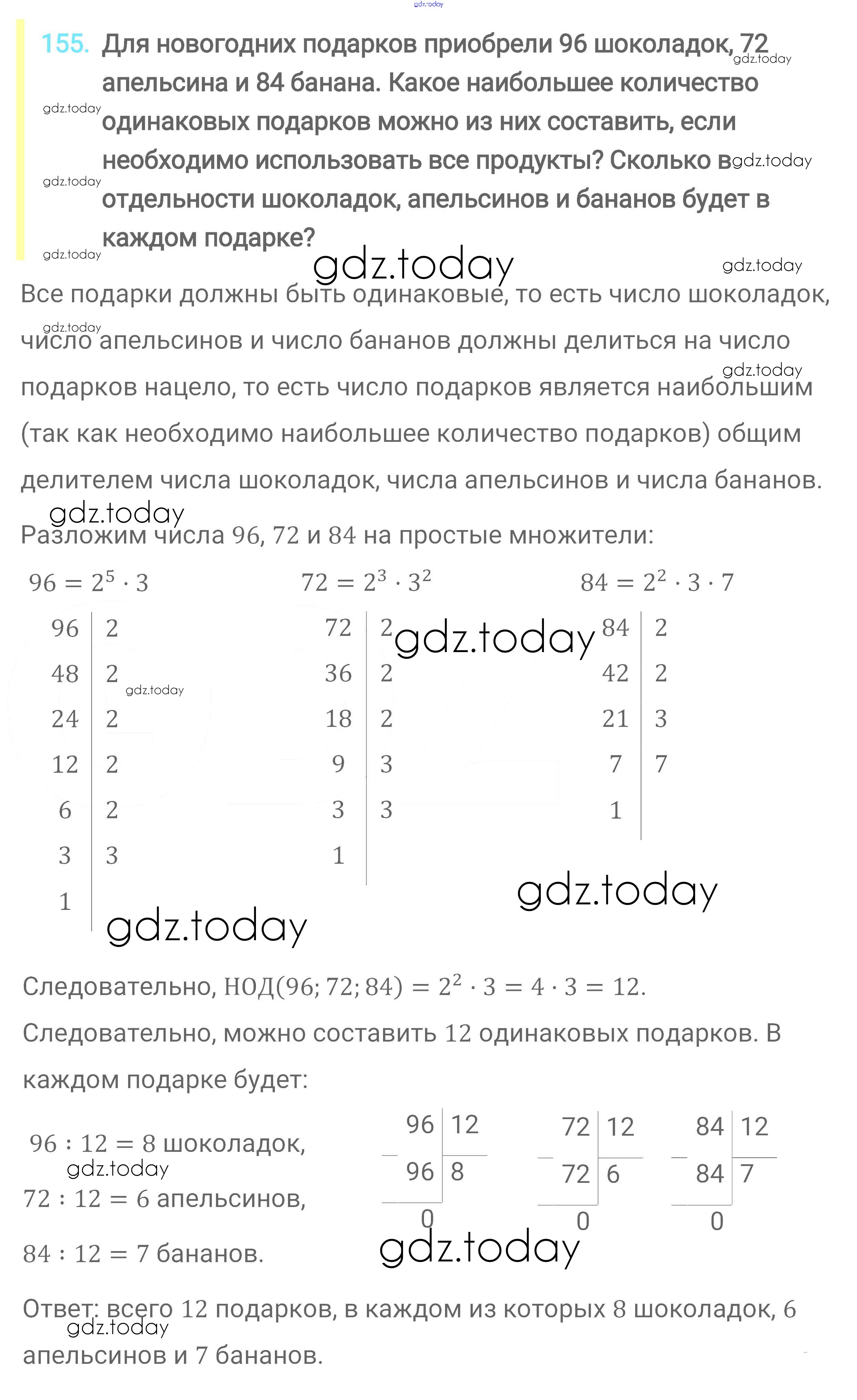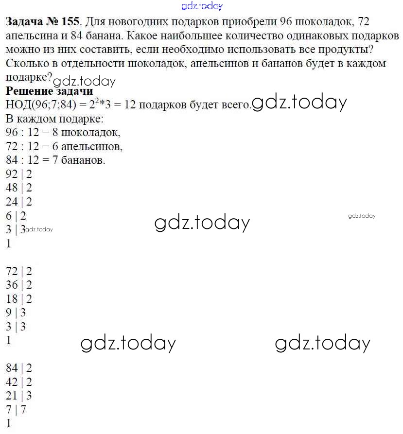 На страницах сайта gdz.today вы найдете учебный и вспомогательный материал, направленный на улучшения знаний школьной программы. ГДЗ - онлайн мир знаний Решение к главе 1. Делимость натуральных чисел (упражнения) 155 Учебнику по Математике для 6 класса Мерзляк, Полонский Вентана-граф Алгоритм успеха 2016