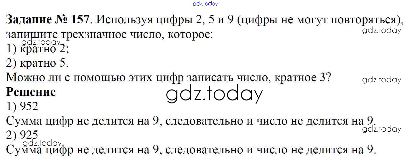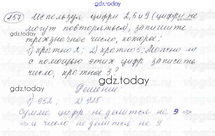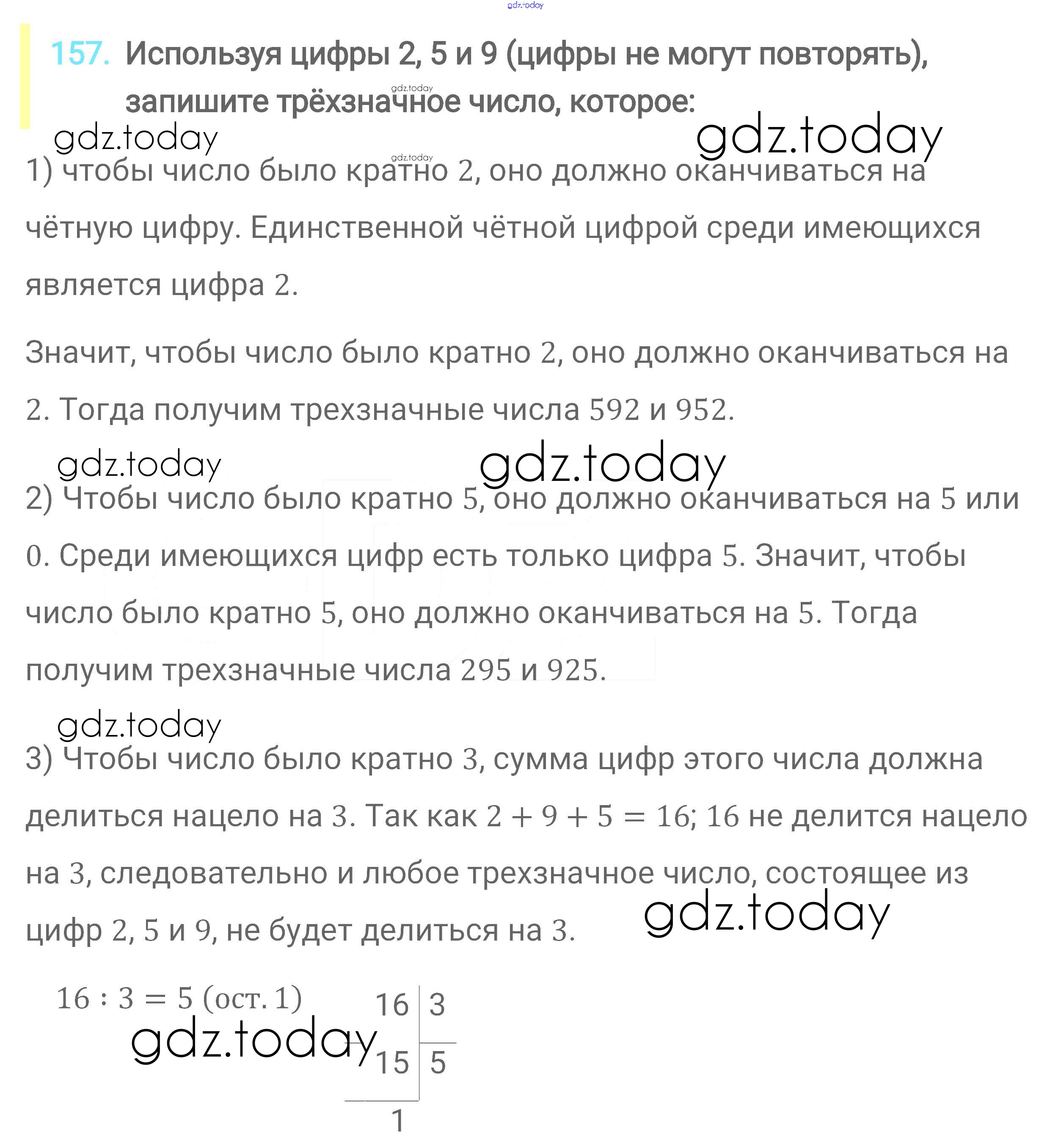 На страницах сайта gdz.today вы найдете учебный и вспомогательный материал, направленный на улучшения знаний школьной программы. ГДЗ - онлайн мир знаний Решение к главе 1. Делимость натуральных чисел (упражнения) 157 Учебнику по Математике для 6 класса Мерзляк, Полонский Вентана-граф Алгоритм успеха 2016