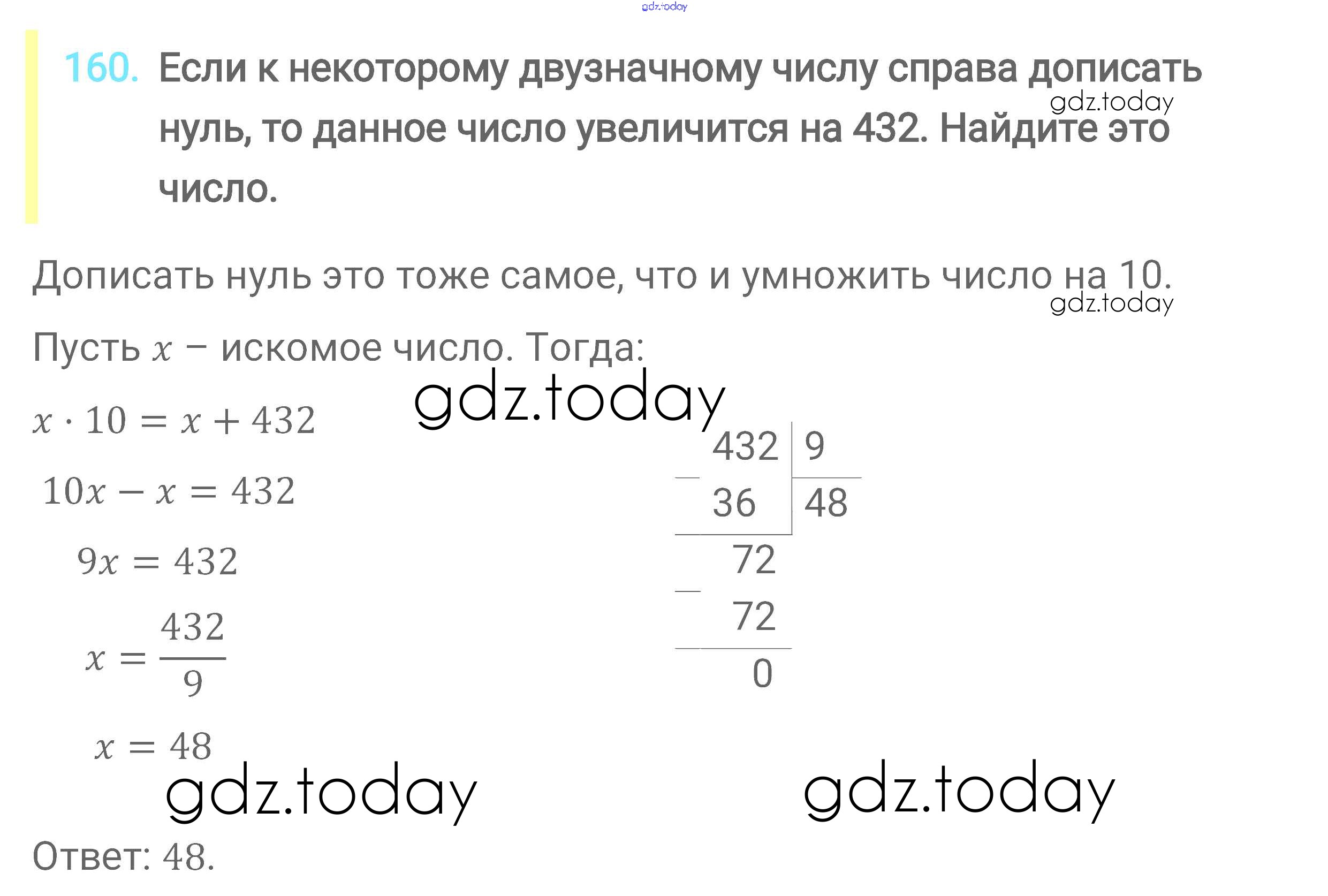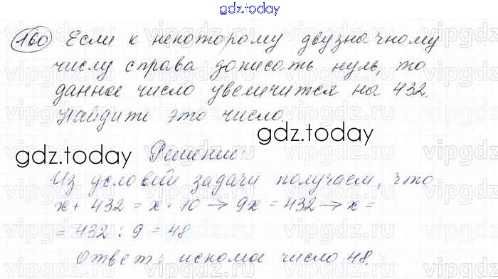 На страницах сайта gdz.today вы найдете учебный и вспомогательный материал, направленный на улучшения знаний школьной программы. ГДЗ - онлайн мир знаний Решение к главе 1. Делимость натуральных чисел (упражнения) 160 Учебнику по Математике для 6 класса Мерзляк, Полонский Вентана-граф Алгоритм успеха 2016