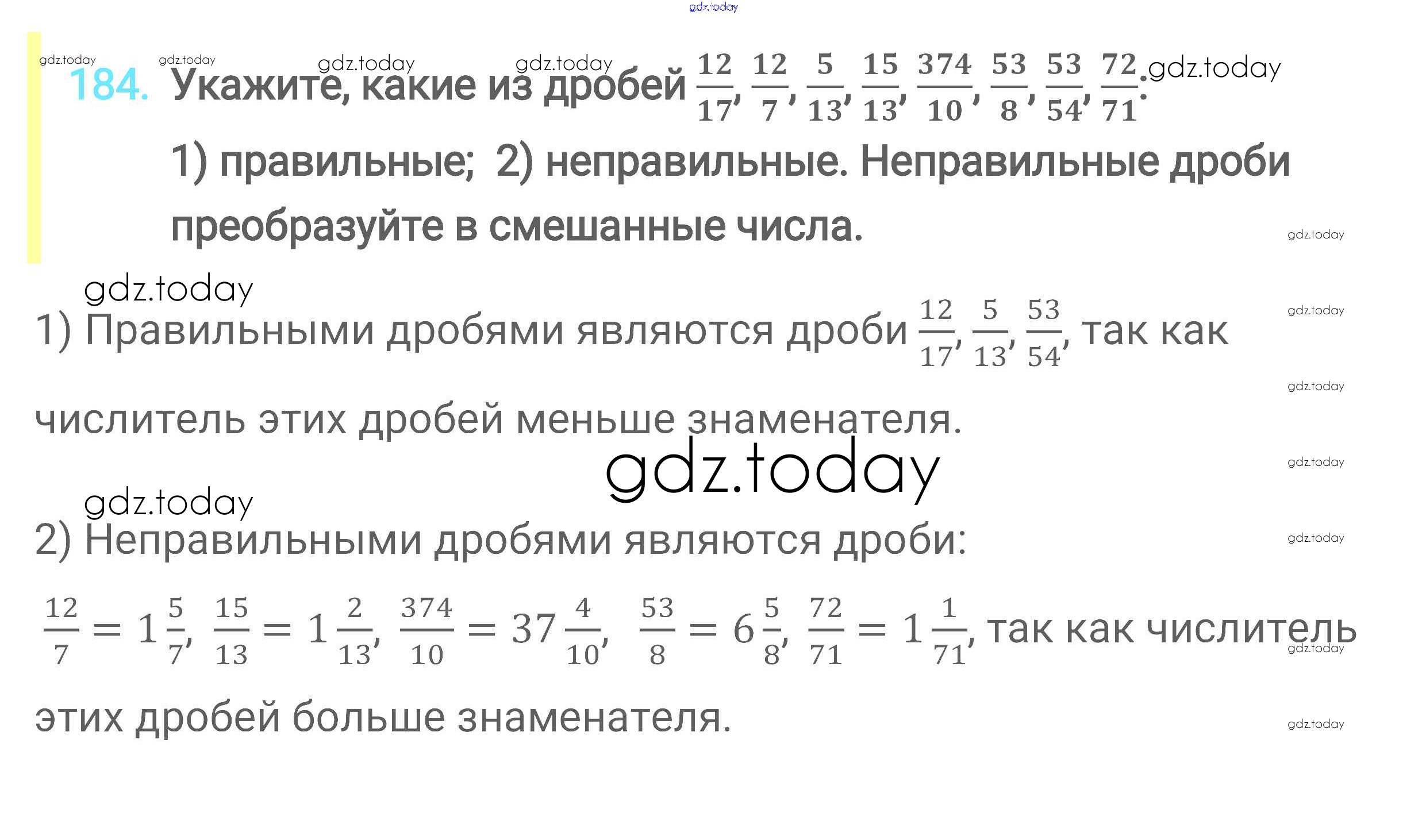 На страницах сайта gdz.today вы найдете учебный и вспомогательный материал, направленный на улучшения знаний школьной программы. ГДЗ - онлайн мир знаний Решение к главе 1. Делимость натуральных чисел (упражнения) 184 Учебнику по Математике для 6 класса Мерзляк, Полонский Вентана-граф Алгоритм успеха 2016