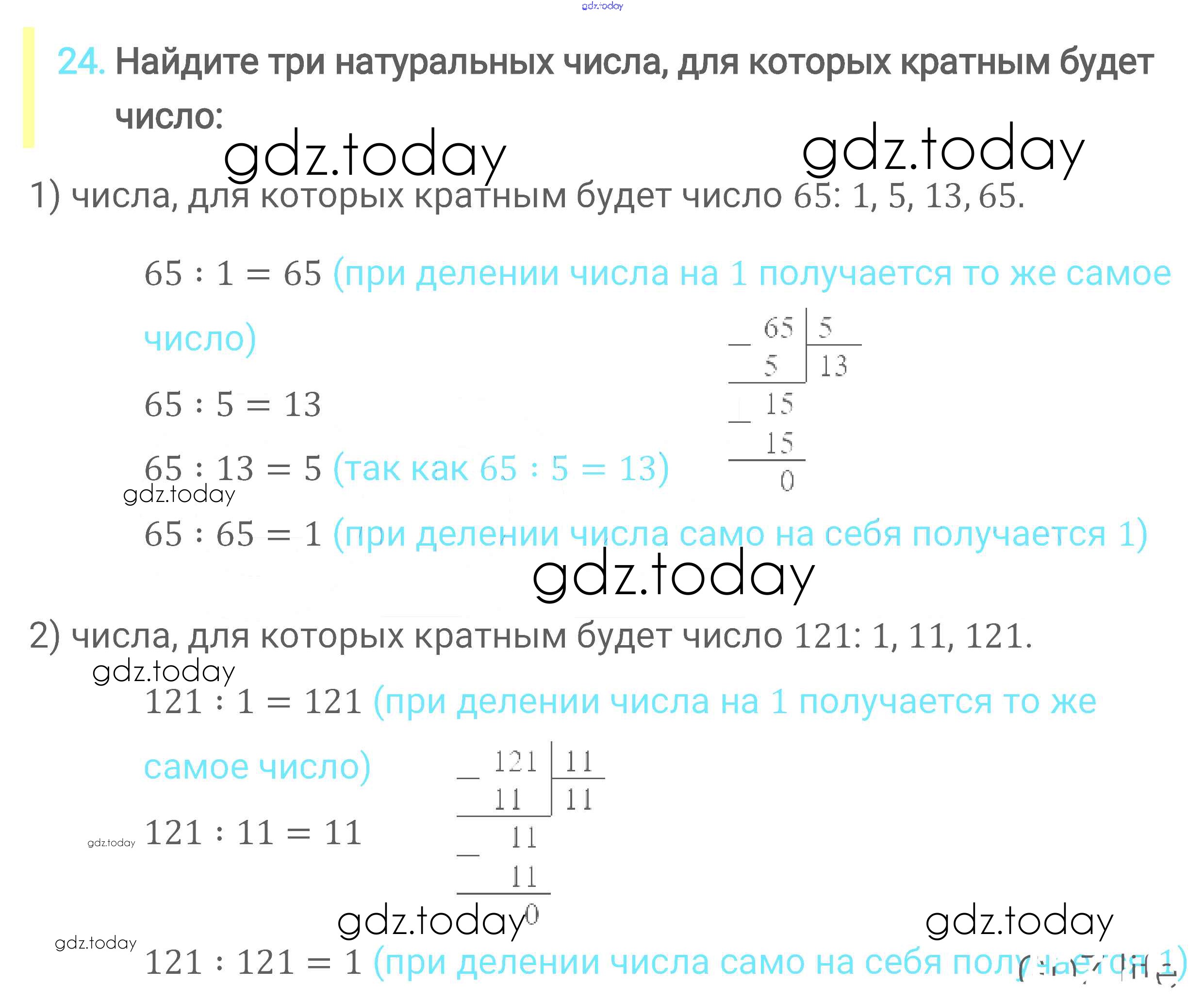 На страницах сайта gdz.today вы найдете учебный и вспомогательный материал, направленный на улучшения знаний школьной программы. ГДЗ - онлайн мир знаний Решение к главе 1. Делимость натуральных чисел (упражнения) 24 Учебнику по Математике для 6 класса Мерзляк, Полонский Вентана-граф Алгоритм успеха 2016