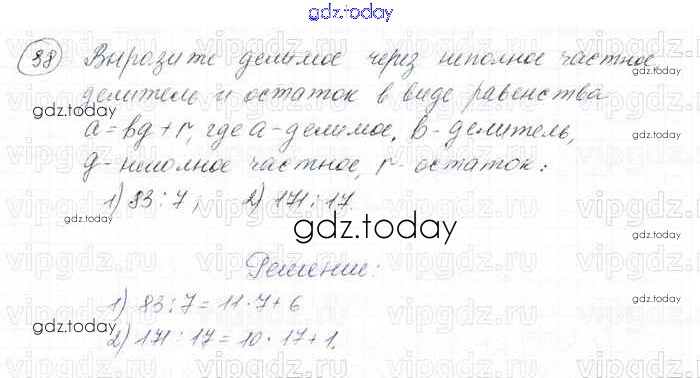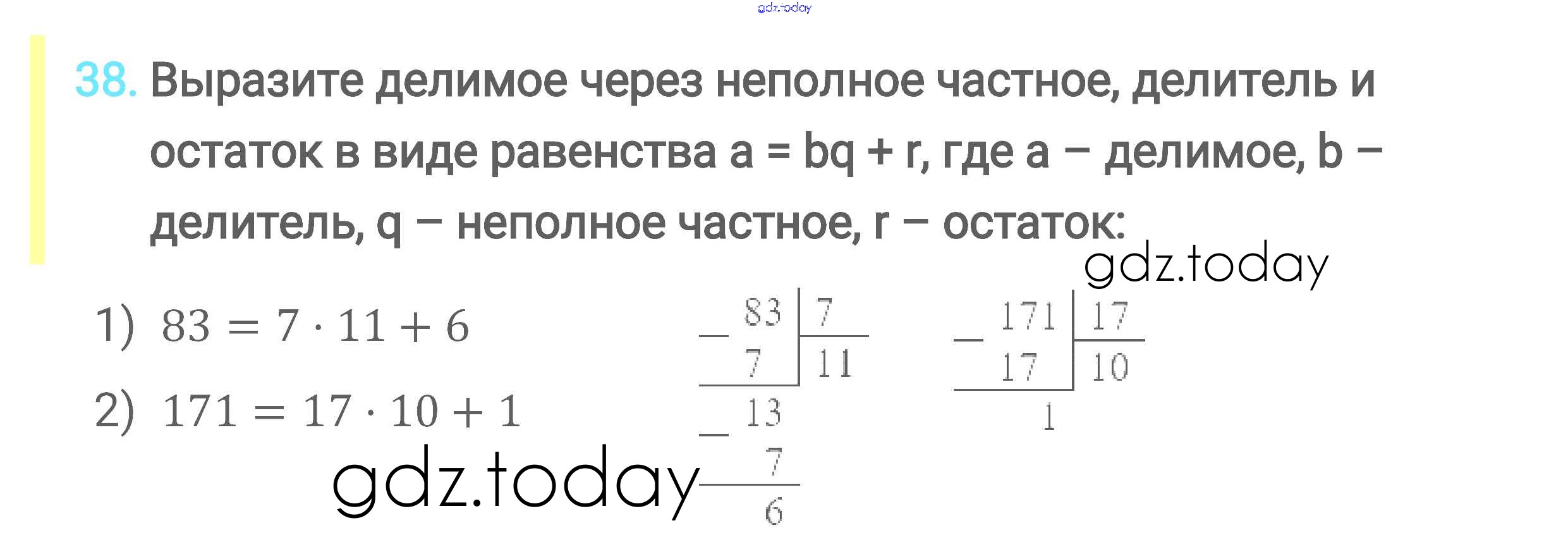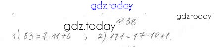 На страницах сайта gdz.today вы найдете учебный и вспомогательный материал, направленный на улучшения знаний школьной программы. ГДЗ - онлайн мир знаний Решение к главе 1. Делимость натуральных чисел (упражнения) 38 Учебнику по Математике для 6 класса Мерзляк, Полонский Вентана-граф Алгоритм успеха 2016
