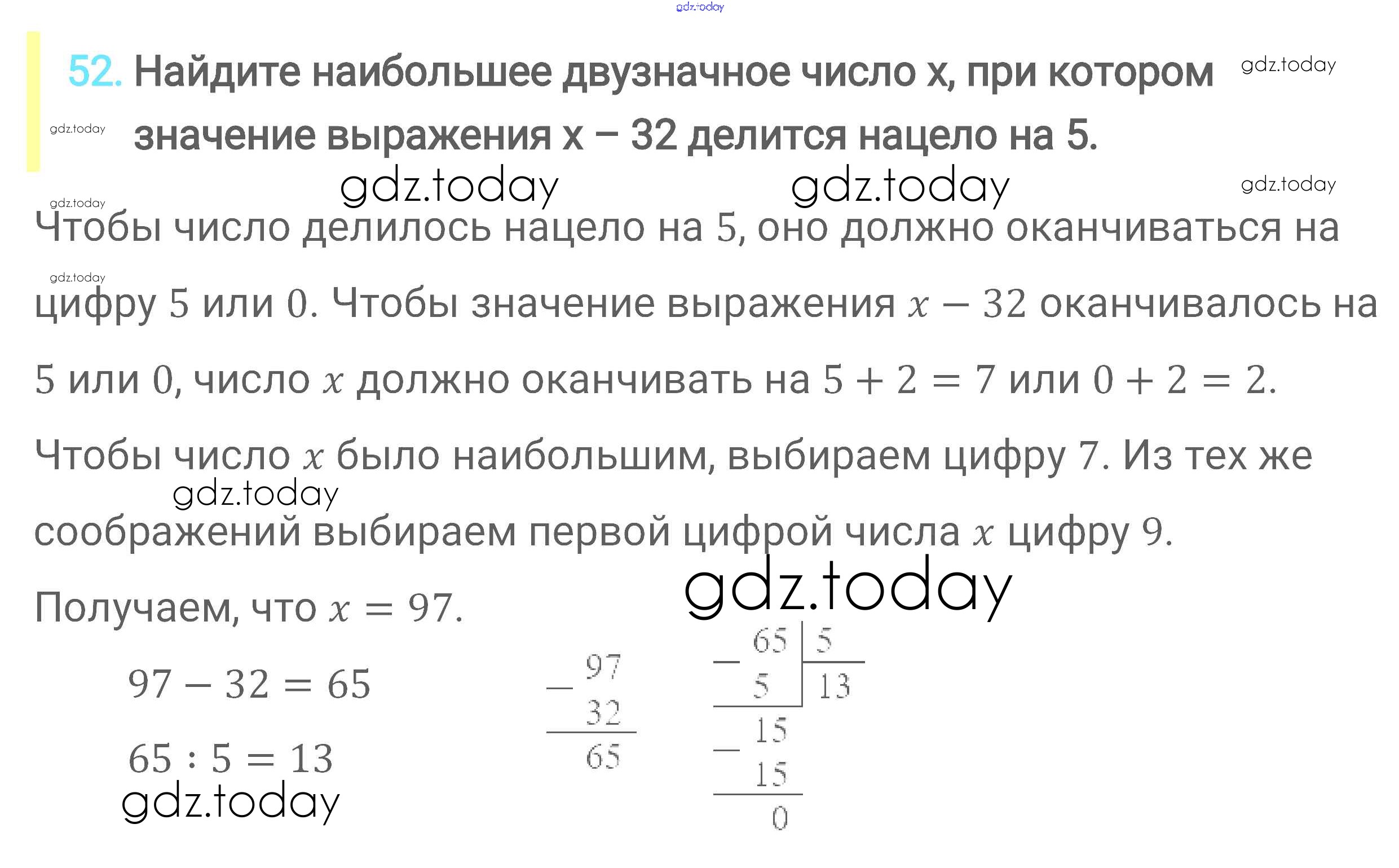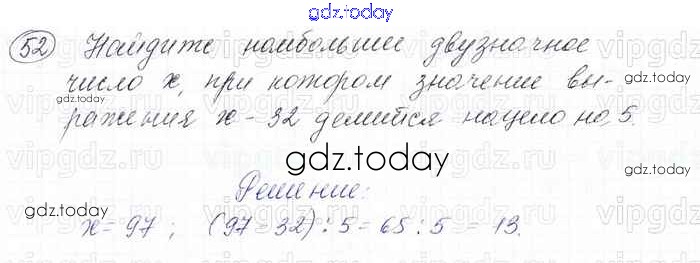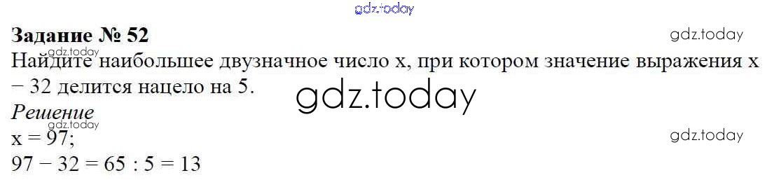 На страницах сайта gdz.today вы найдете учебный и вспомогательный материал, направленный на улучшения знаний школьной программы. ГДЗ - онлайн мир знаний Решение к главе 1. Делимость натуральных чисел (упражнения) 52 Учебнику по Математике для 6 класса Мерзляк, Полонский Вентана-граф Алгоритм успеха 2016