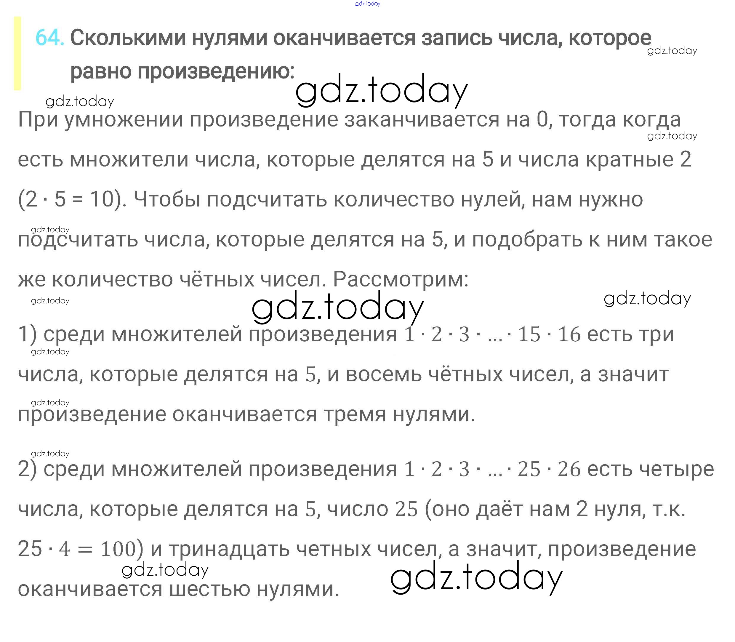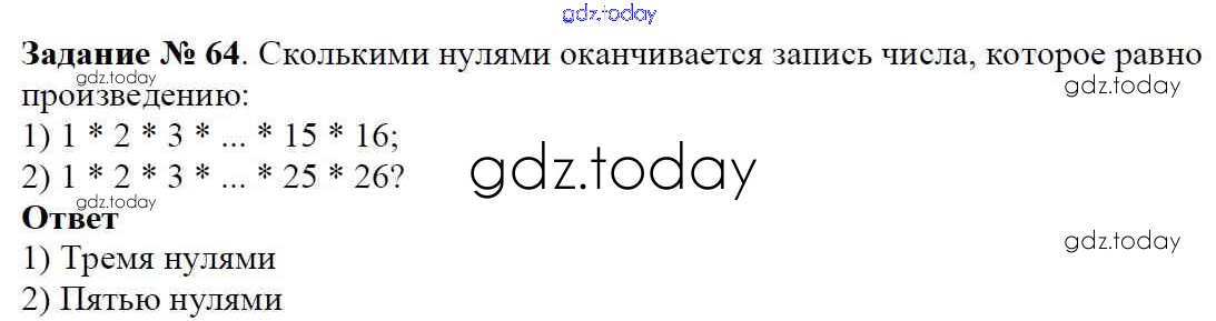 На страницах сайта gdz.today вы найдете учебный и вспомогательный материал, направленный на улучшения знаний школьной программы. ГДЗ - онлайн мир знаний Решение к главе 1. Делимость натуральных чисел (упражнения) 64 Учебнику по Математике для 6 класса Мерзляк, Полонский Вентана-граф Алгоритм успеха 2016