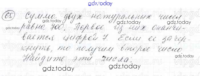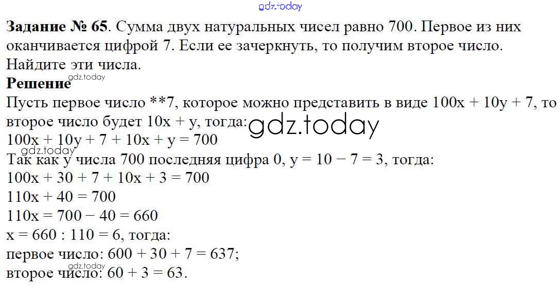 На страницах сайта gdz.today вы найдете учебный и вспомогательный материал, направленный на улучшения знаний школьной программы. ГДЗ - онлайн мир знаний Решение к главе 1. Делимость натуральных чисел (упражнения) 65 Учебнику по Математике для 6 класса Мерзляк, Полонский Вентана-граф Алгоритм успеха 2016