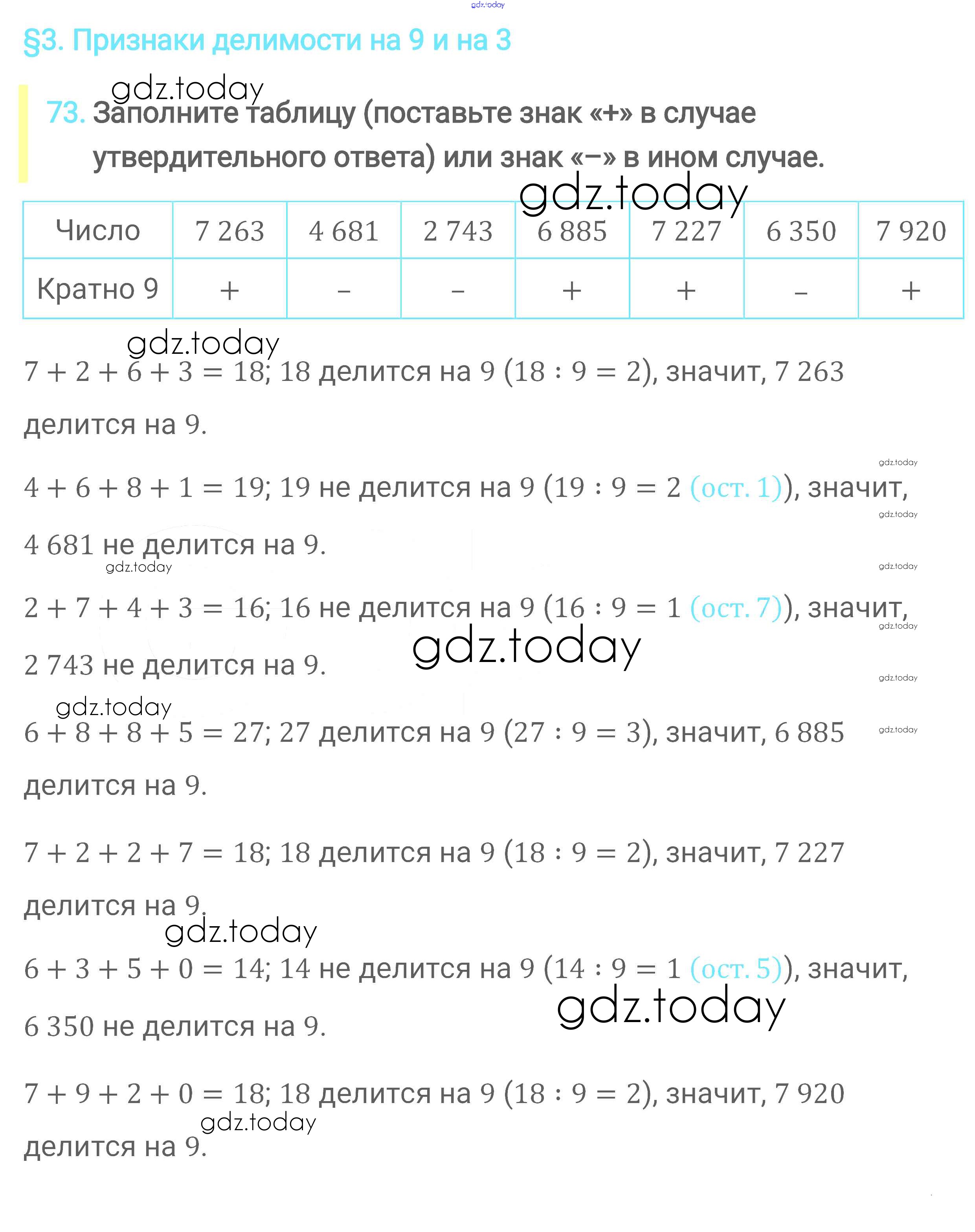 На страницах сайта gdz.today вы найдете учебный и вспомогательный материал, направленный на улучшения знаний школьной программы. ГДЗ - онлайн мир знаний Решение к главе 1. Делимость натуральных чисел (упражнения) 73 Учебнику по Математике для 6 класса Мерзляк, Полонский Вентана-граф Алгоритм успеха 2016
