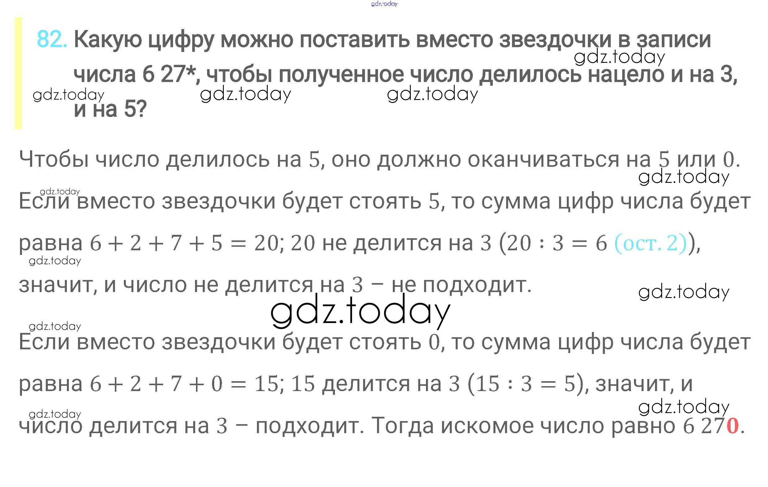 На страницах сайта gdz.today вы найдете учебный и вспомогательный материал, направленный на улучшения знаний школьной программы. ГДЗ - онлайн мир знаний Решение к главе 1. Делимость натуральных чисел (упражнения) 82 Учебнику по Математике для 6 класса Мерзляк, Полонский Вентана-граф Алгоритм успеха 2016