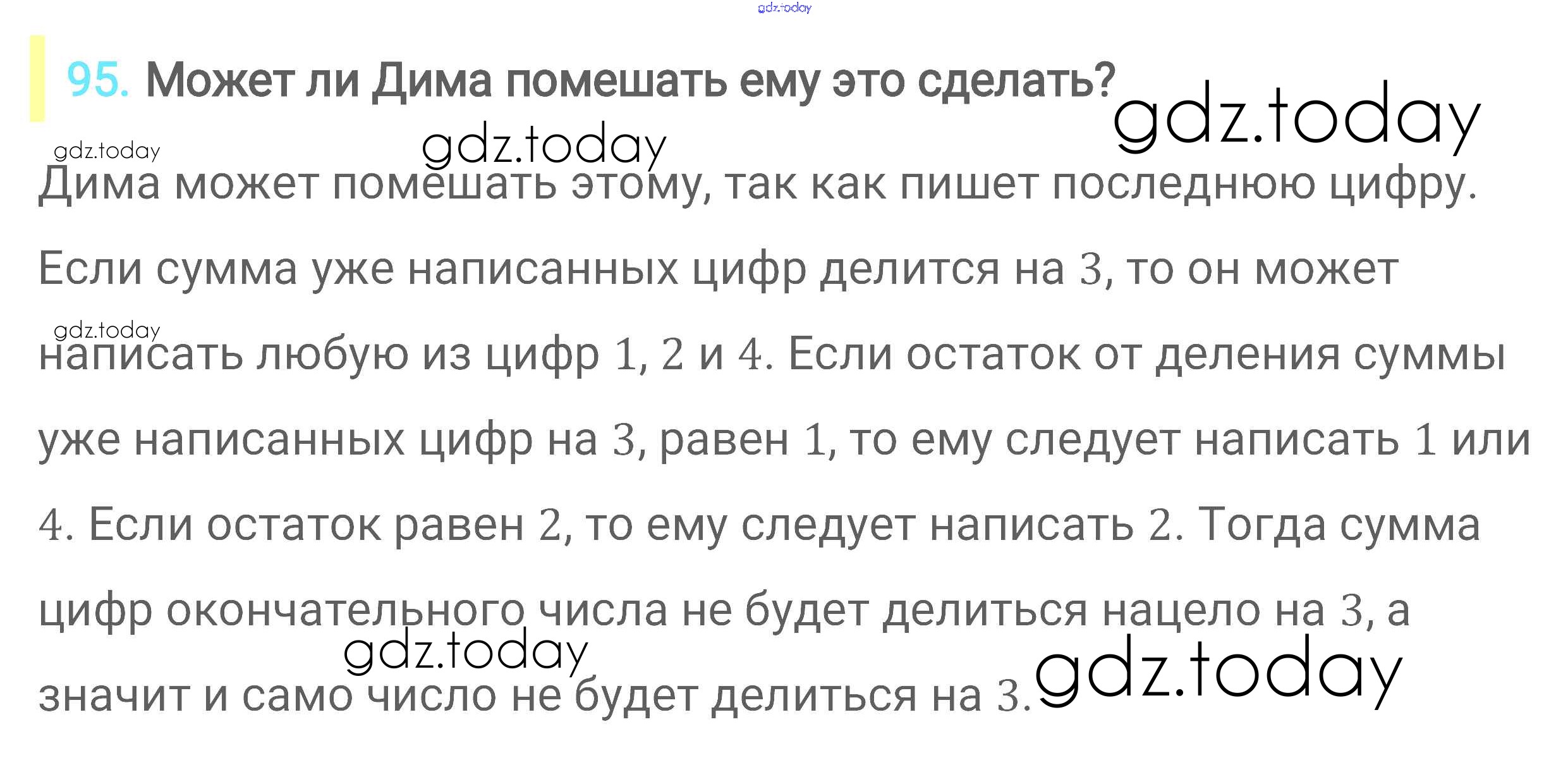 На страницах сайта gdz.today вы найдете учебный и вспомогательный материал, направленный на улучшения знаний школьной программы. ГДЗ - онлайн мир знаний Решение к главе 1. Делимость натуральных чисел (упражнения) 95 Учебнику по Математике для 6 класса Мерзляк, Полонский Вентана-граф Алгоритм успеха 2016