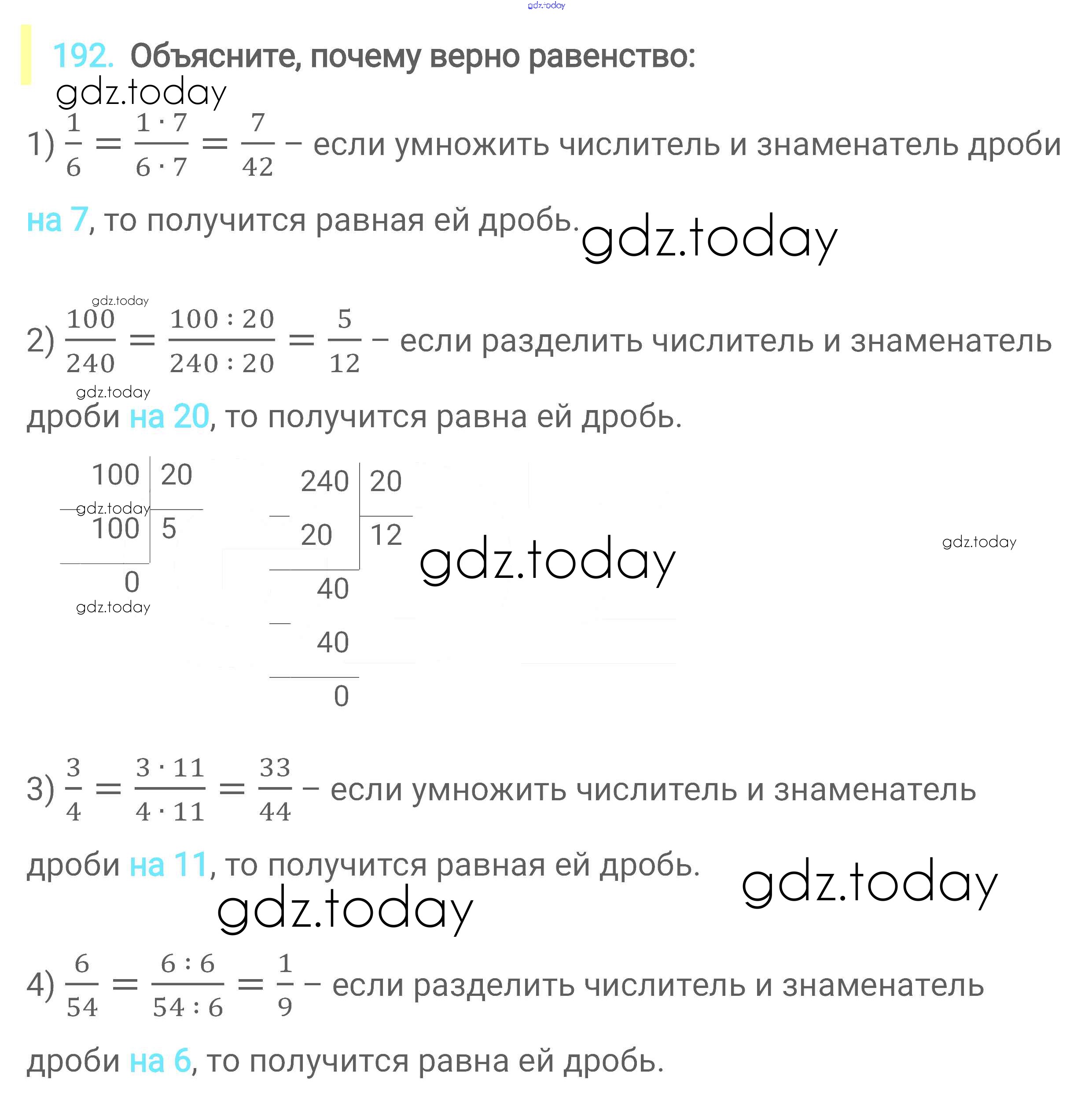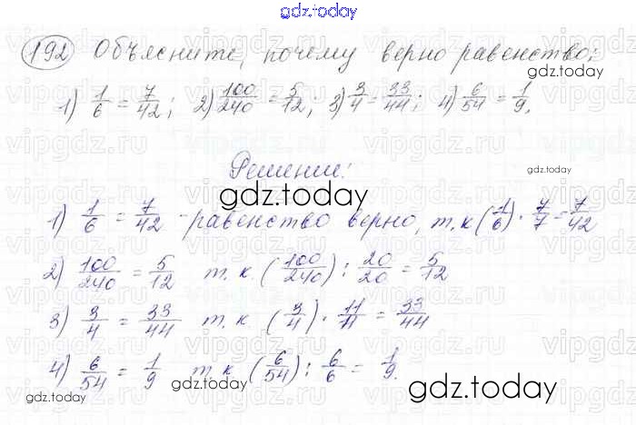 Ответы к Решение к главе 2. Обыкновенные дроби (упражнения) 192 Учебнику по Математике для 6 класса Мерзляк, Полонский Вентана-граф Алгоритм успеха 2016