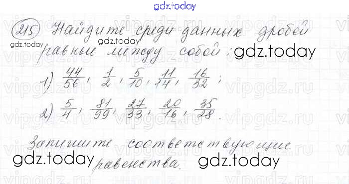 На страницах сайта gdz.today вы найдете учебный и вспомогательный материал, направленный на улучшения знаний школьной программы. ГДЗ - онлайн мир знаний Решение к главе 2. Обыкновенные дроби (упражнения) 215 Учебнику по Математике для 6 класса Мерзляк, Полонский Вентана-граф Алгоритм успеха 2016