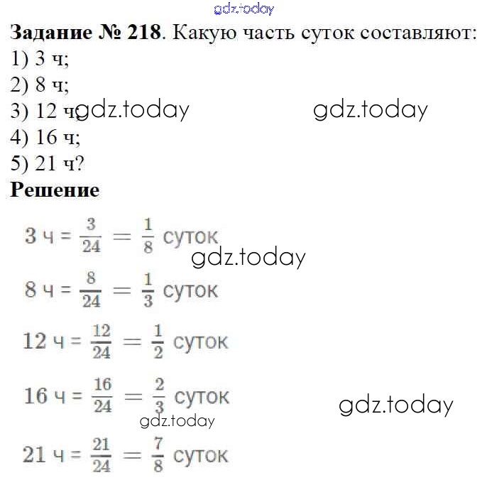 На страницах сайта gdz.today вы найдете учебный и вспомогательный материал, направленный на улучшения знаний школьной программы. ГДЗ - онлайн мир знаний Решение к главе 2. Обыкновенные дроби (упражнения) 218 Учебнику по Математике для 6 класса Мерзляк, Полонский Вентана-граф Алгоритм успеха 2016