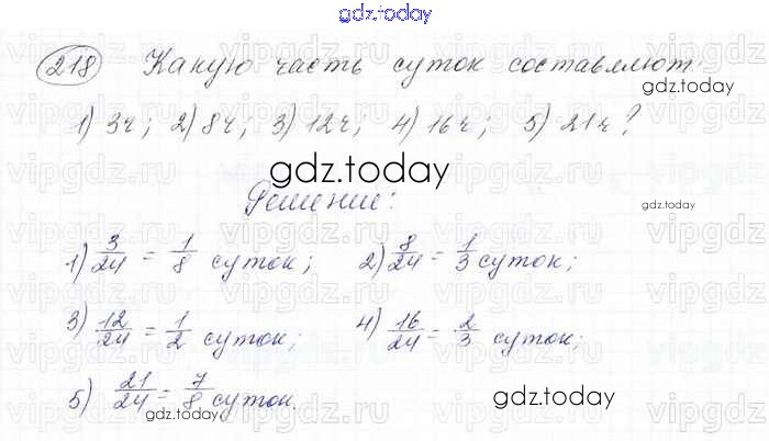Ответы к Решение к главе 2. Обыкновенные дроби (упражнения) 218 Учебнику по Математике для 6 класса Мерзляк, Полонский Вентана-граф Алгоритм успеха 2016