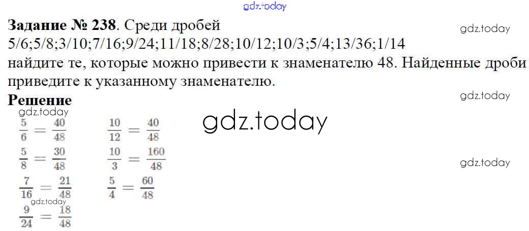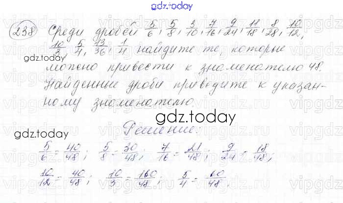 Ответы к Решение к главе 2. Обыкновенные дроби (упражнения) 238 Учебнику по Математике для 6 класса Мерзляк, Полонский Вентана-граф Алгоритм успеха 2016