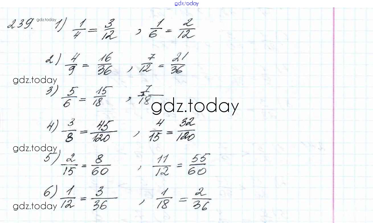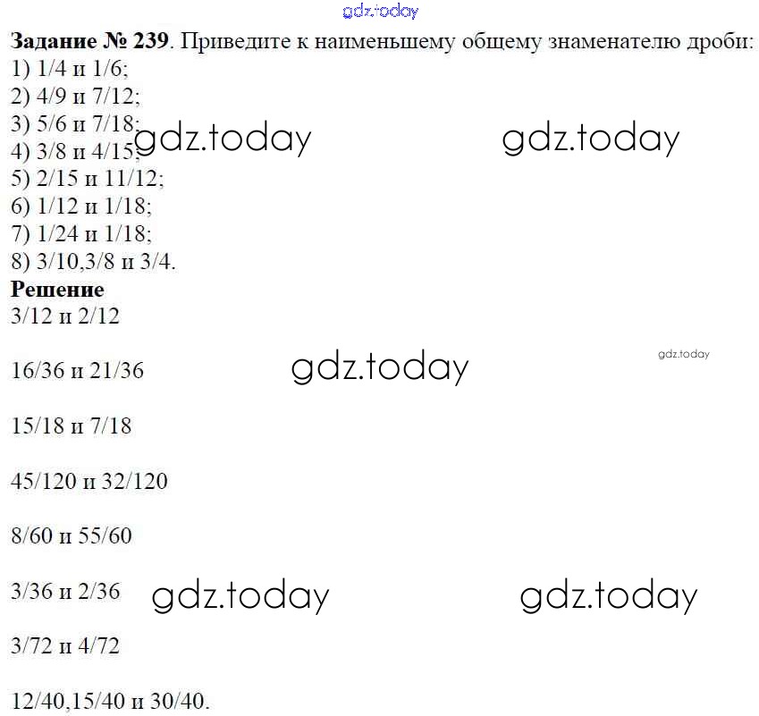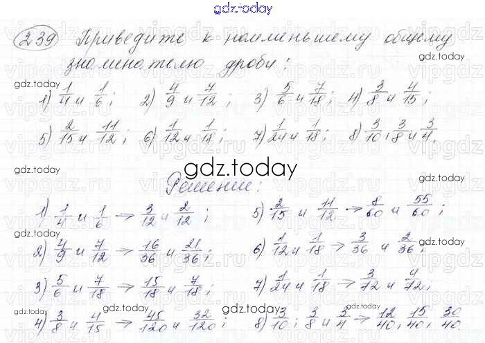 Ответы к Решение к главе 2. Обыкновенные дроби (упражнения) 239 Учебнику по Математике для 6 класса Мерзляк, Полонский Вентана-граф Алгоритм успеха 2016