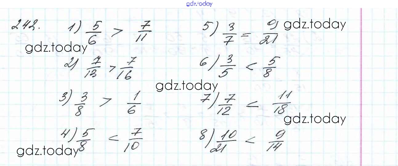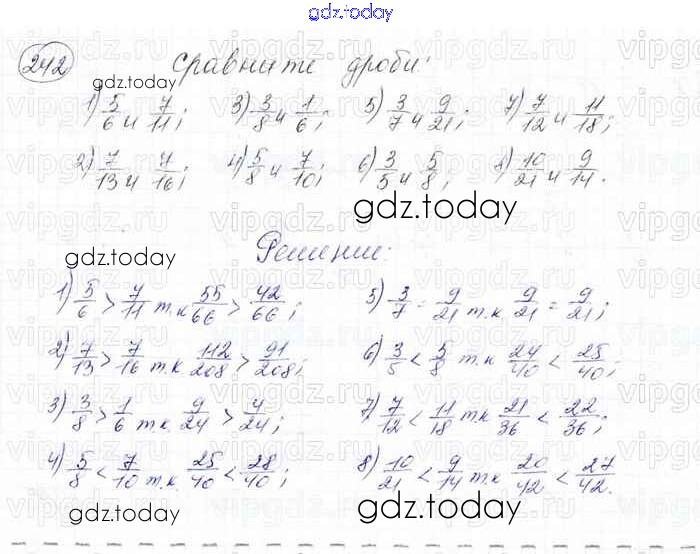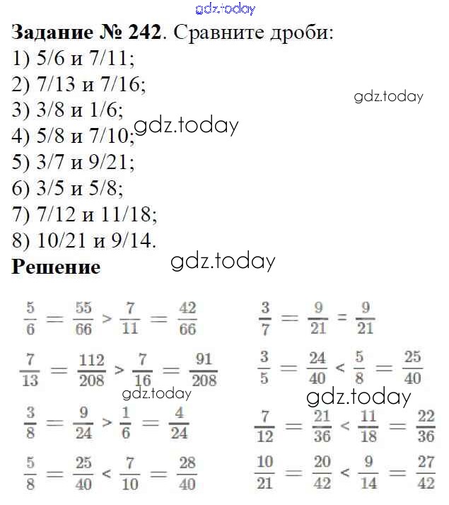 Ответы к Решение к главе 2. Обыкновенные дроби (упражнения) 242 Учебнику по Математике для 6 класса Мерзляк, Полонский Вентана-граф Алгоритм успеха 2016