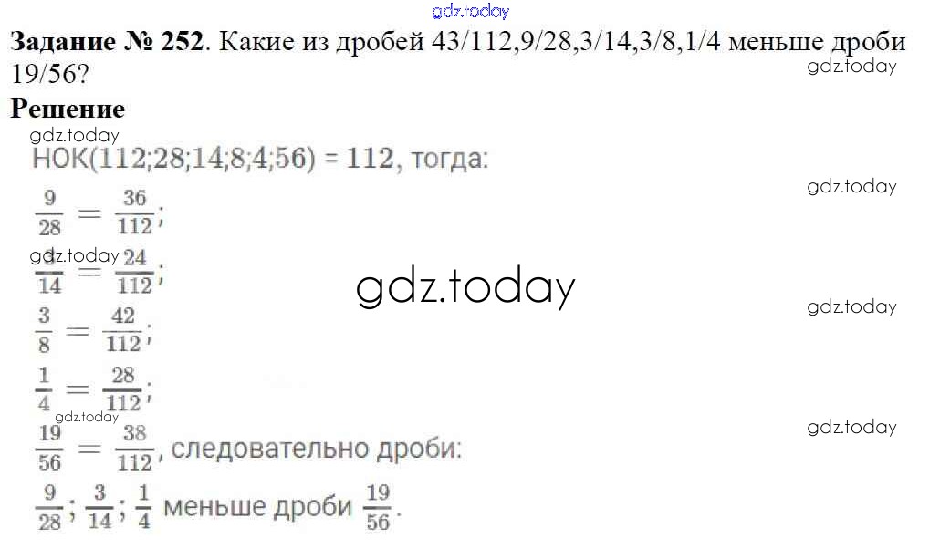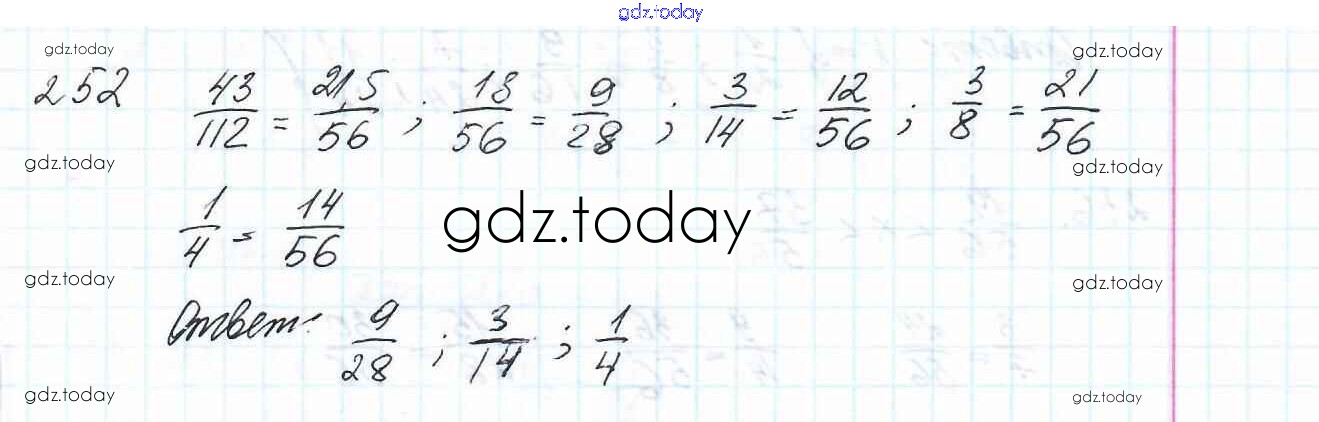 Ответы к Решение к главе 2. Обыкновенные дроби (упражнения) 252 Учебнику по Математике для 6 класса Мерзляк, Полонский Вентана-граф Алгоритм успеха 2016