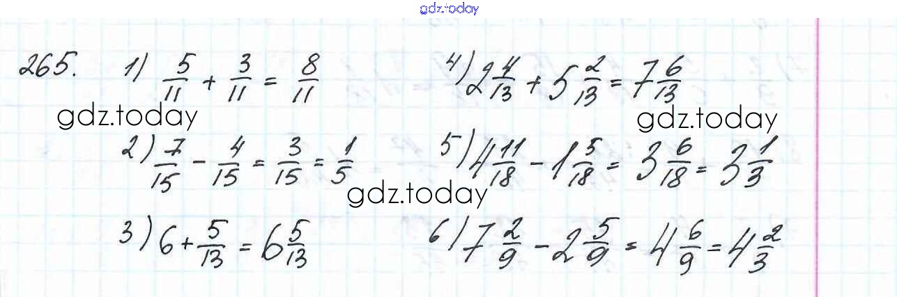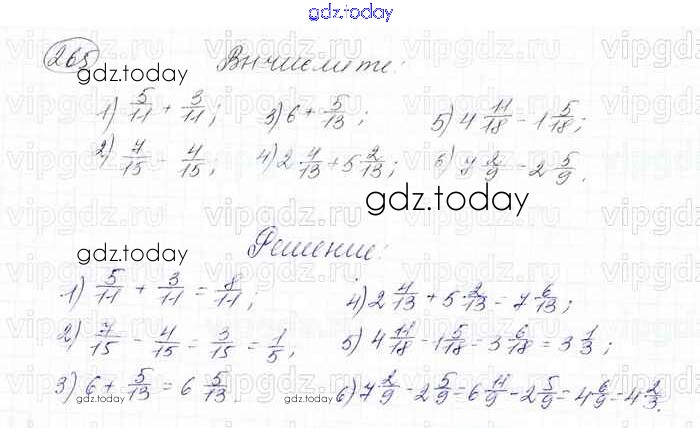 Ответы к Решение к главе 2. Обыкновенные дроби (упражнения) 265 Учебнику по Математике для 6 класса Мерзляк, Полонский Вентана-граф Алгоритм успеха 2016