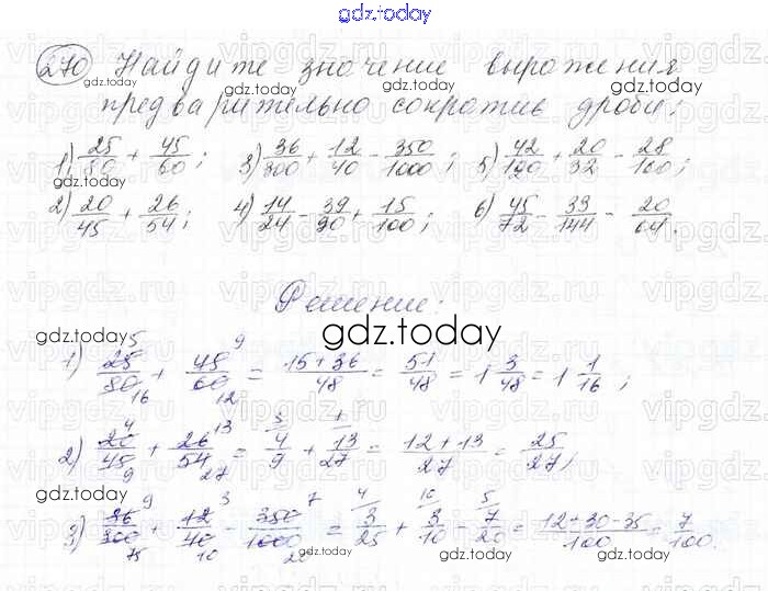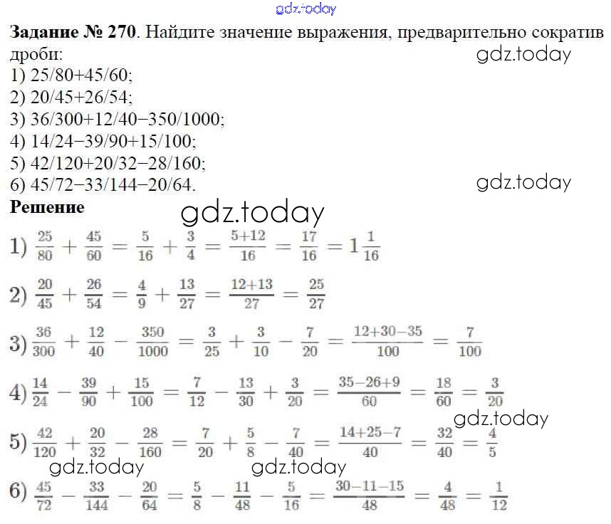 Ответы к Решение к главе 2. Обыкновенные дроби (упражнения) 270 Учебнику по Математике для 6 класса Мерзляк, Полонский Вентана-граф Алгоритм успеха 2016