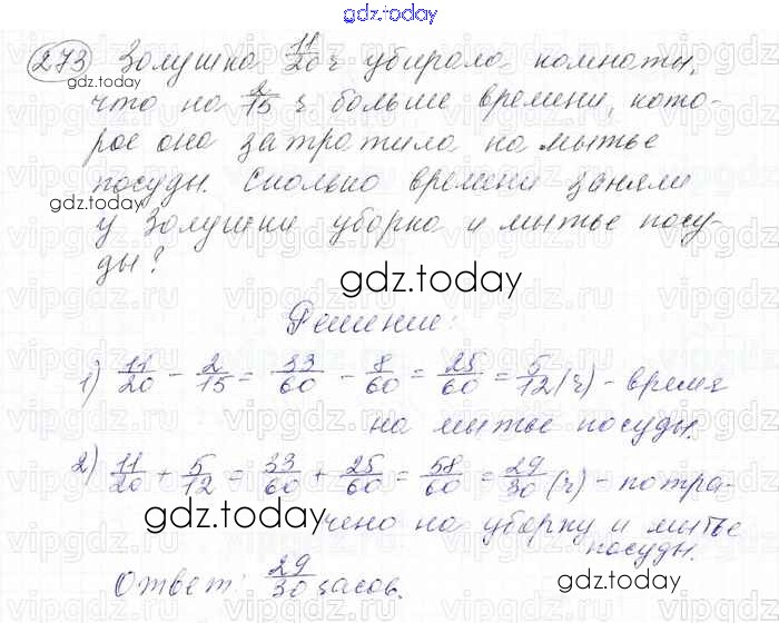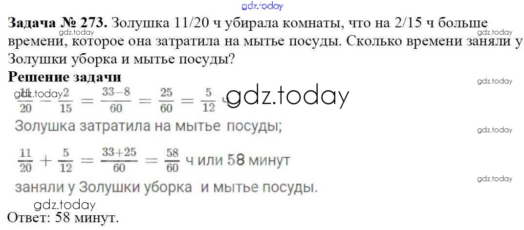 Ответы к Решение к главе 2. Обыкновенные дроби (упражнения) 273 Учебнику по Математике для 6 класса Мерзляк, Полонский Вентана-граф Алгоритм успеха 2016