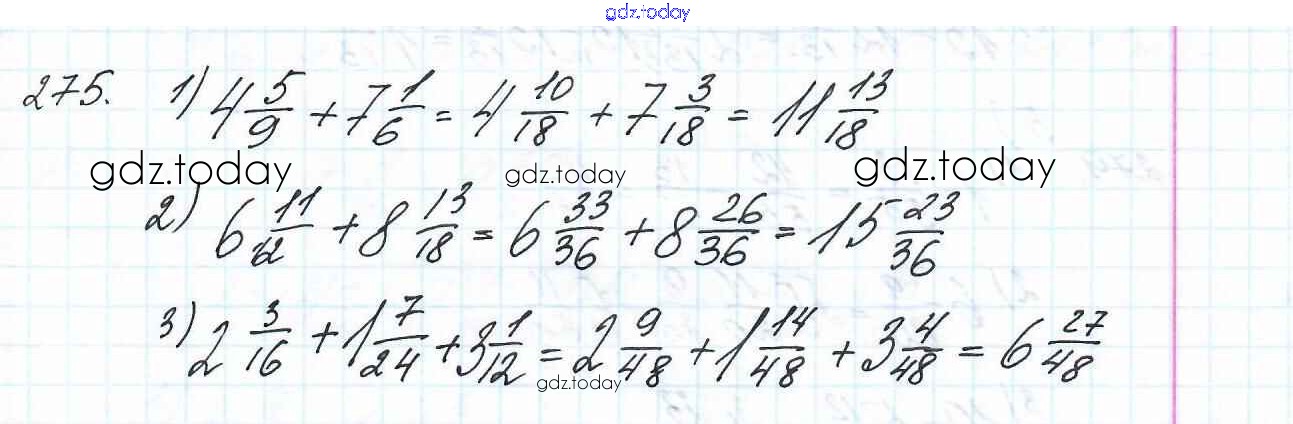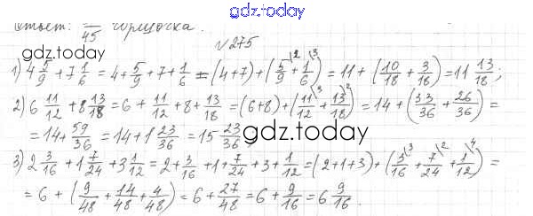 Ответы к Решение к главе 2. Обыкновенные дроби (упражнения) 275 Учебнику по Математике для 6 класса Мерзляк, Полонский Вентана-граф Алгоритм успеха 2016