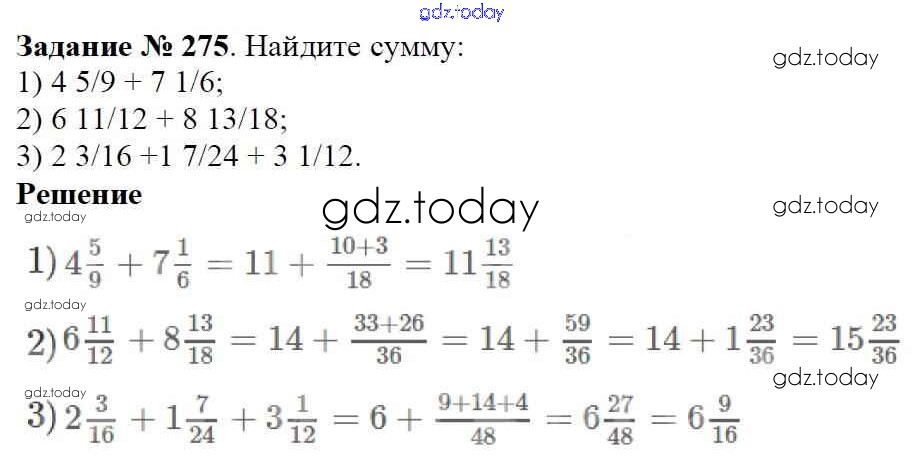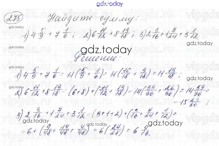 На страницах сайта gdz.today вы найдете учебный и вспомогательный материал, направленный на улучшения знаний школьной программы. ГДЗ - онлайн мир знаний Решение к главе 2. Обыкновенные дроби (упражнения) 275 Учебнику по Математике для 6 класса Мерзляк, Полонский Вентана-граф Алгоритм успеха 2016