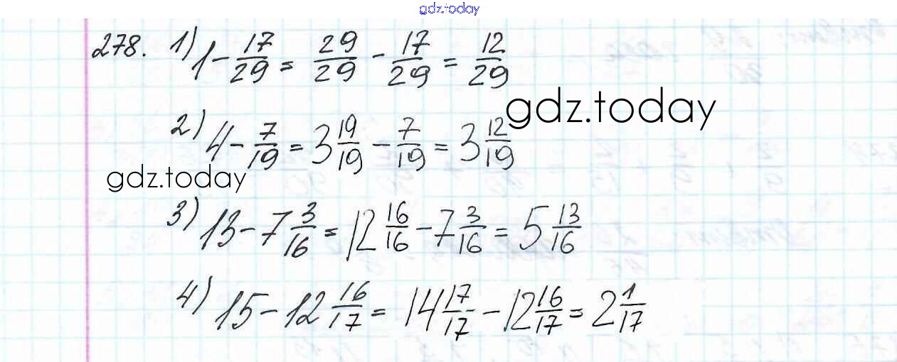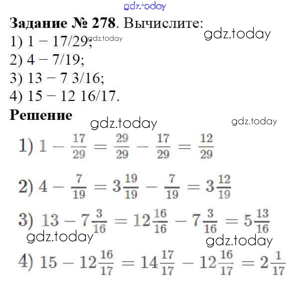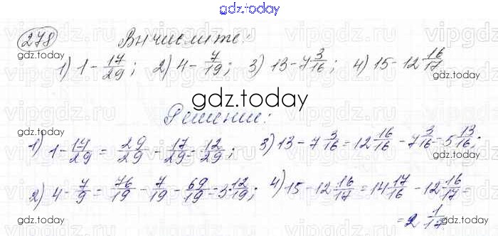 Ответы к Решение к главе 2. Обыкновенные дроби (упражнения) 278 Учебнику по Математике для 6 класса Мерзляк, Полонский Вентана-граф Алгоритм успеха 2016