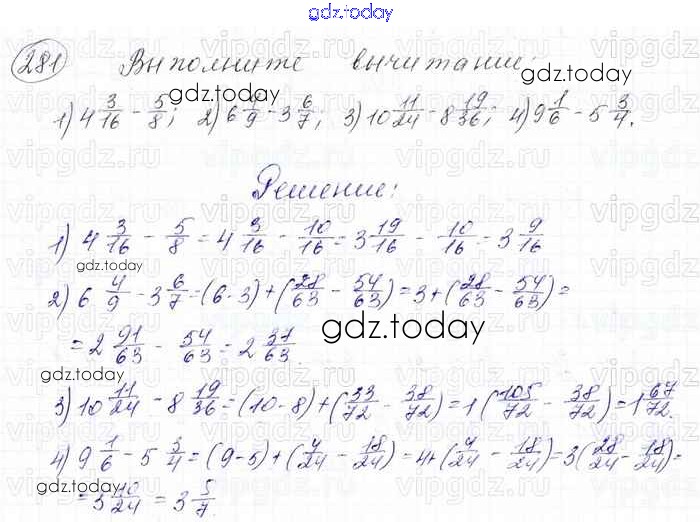 Ответы к Решение к главе 2. Обыкновенные дроби (упражнения) 281 Учебнику по Математике для 6 класса Мерзляк, Полонский Вентана-граф Алгоритм успеха 2016