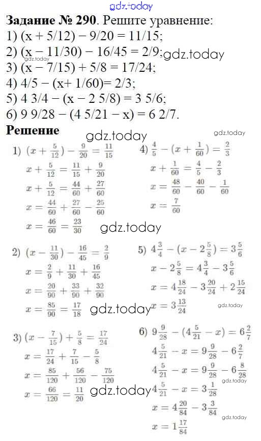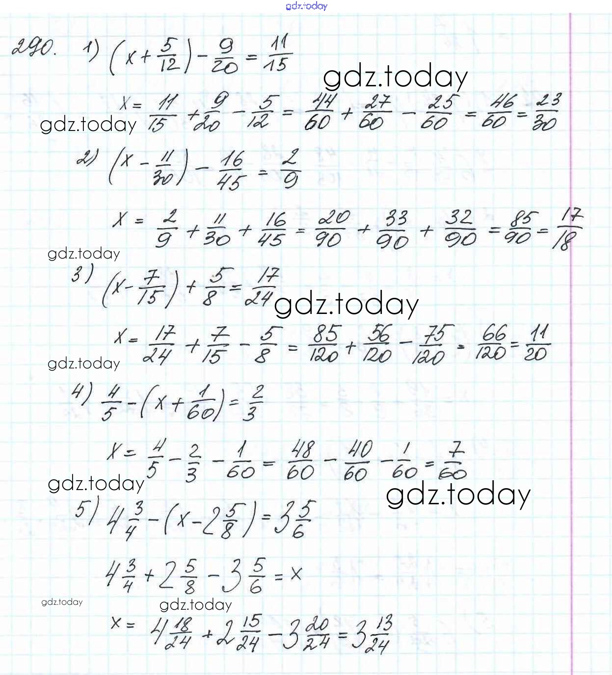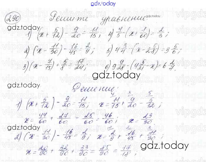 Ответы к Решение к главе 2. Обыкновенные дроби (упражнения) 290 Учебнику по Математике для 6 класса Мерзляк, Полонский Вентана-граф Алгоритм успеха 2016