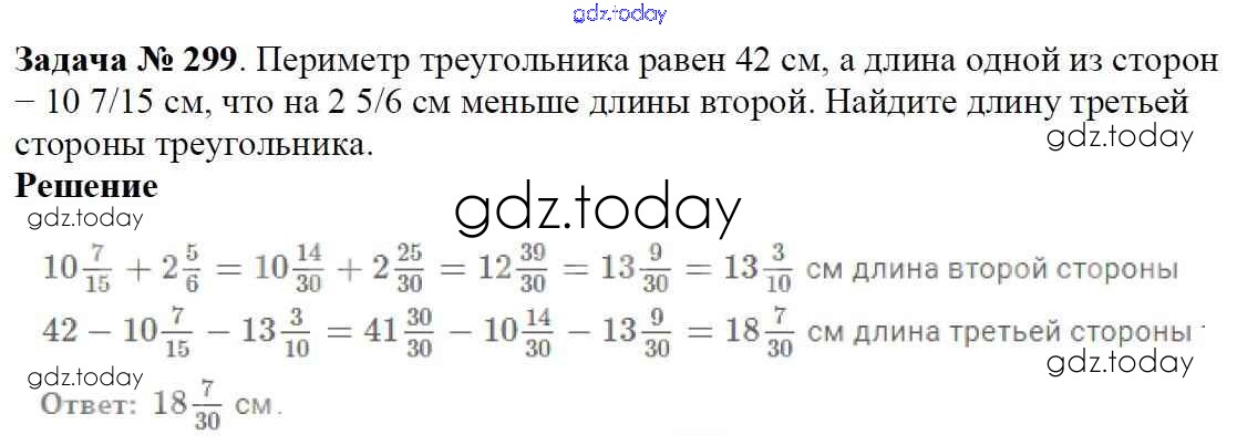 Ответы к Решение к главе 2. Обыкновенные дроби (упражнения) 299 Учебнику по Математике для 6 класса Мерзляк, Полонский Вентана-граф Алгоритм успеха 2016