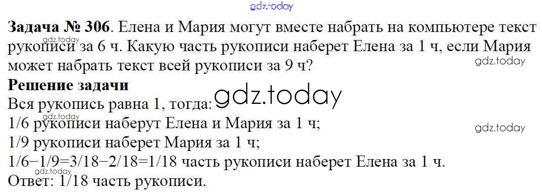 Ответы к Решение к главе 2. Обыкновенные дроби (упражнения) 306 Учебнику по Математике для 6 класса Мерзляк, Полонский Вентана-граф Алгоритм успеха 2016