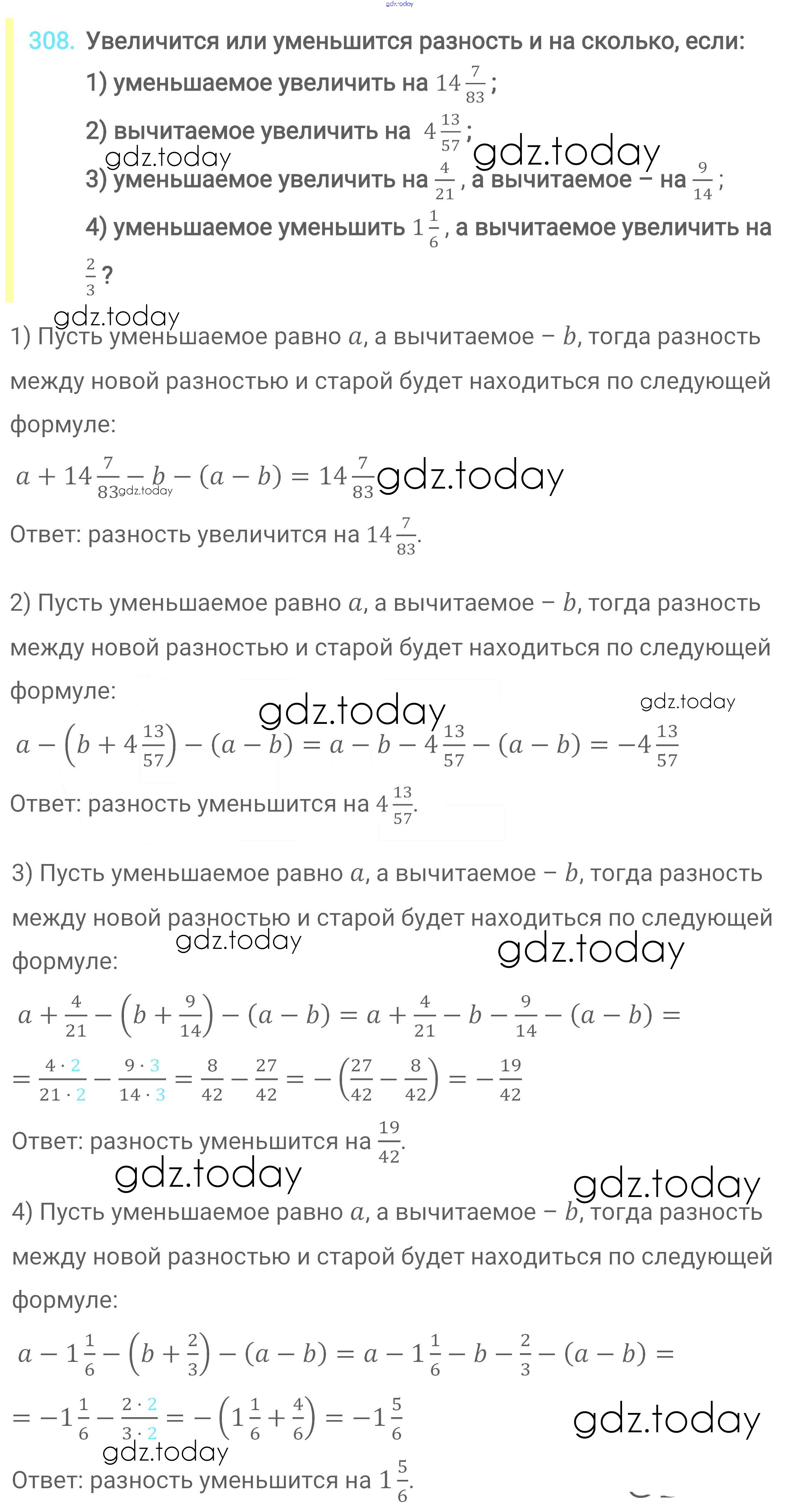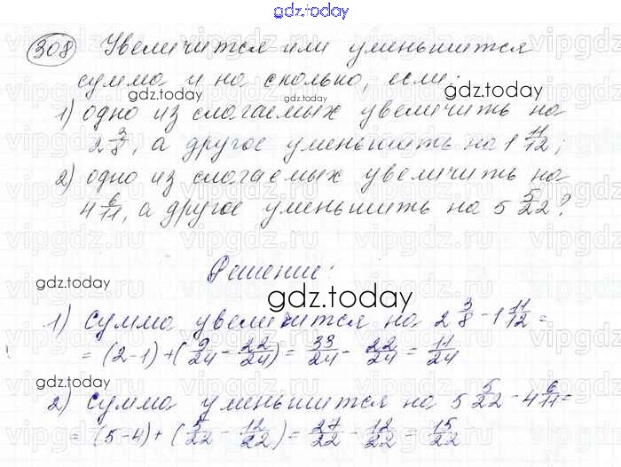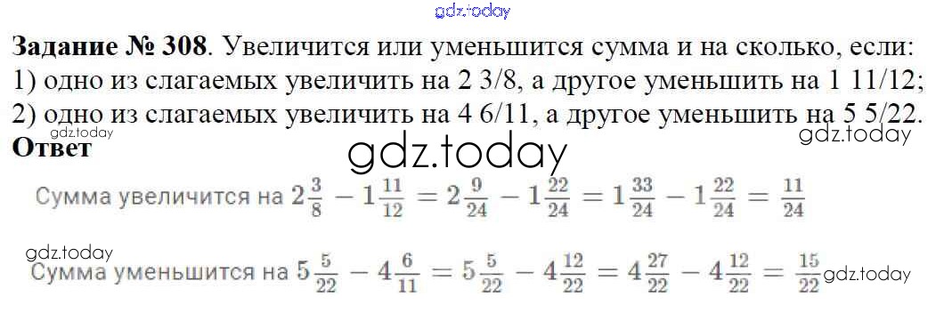 Ответы к Решение к главе 2. Обыкновенные дроби (упражнения) 308 Учебнику по Математике для 6 класса Мерзляк, Полонский Вентана-граф Алгоритм успеха 2016