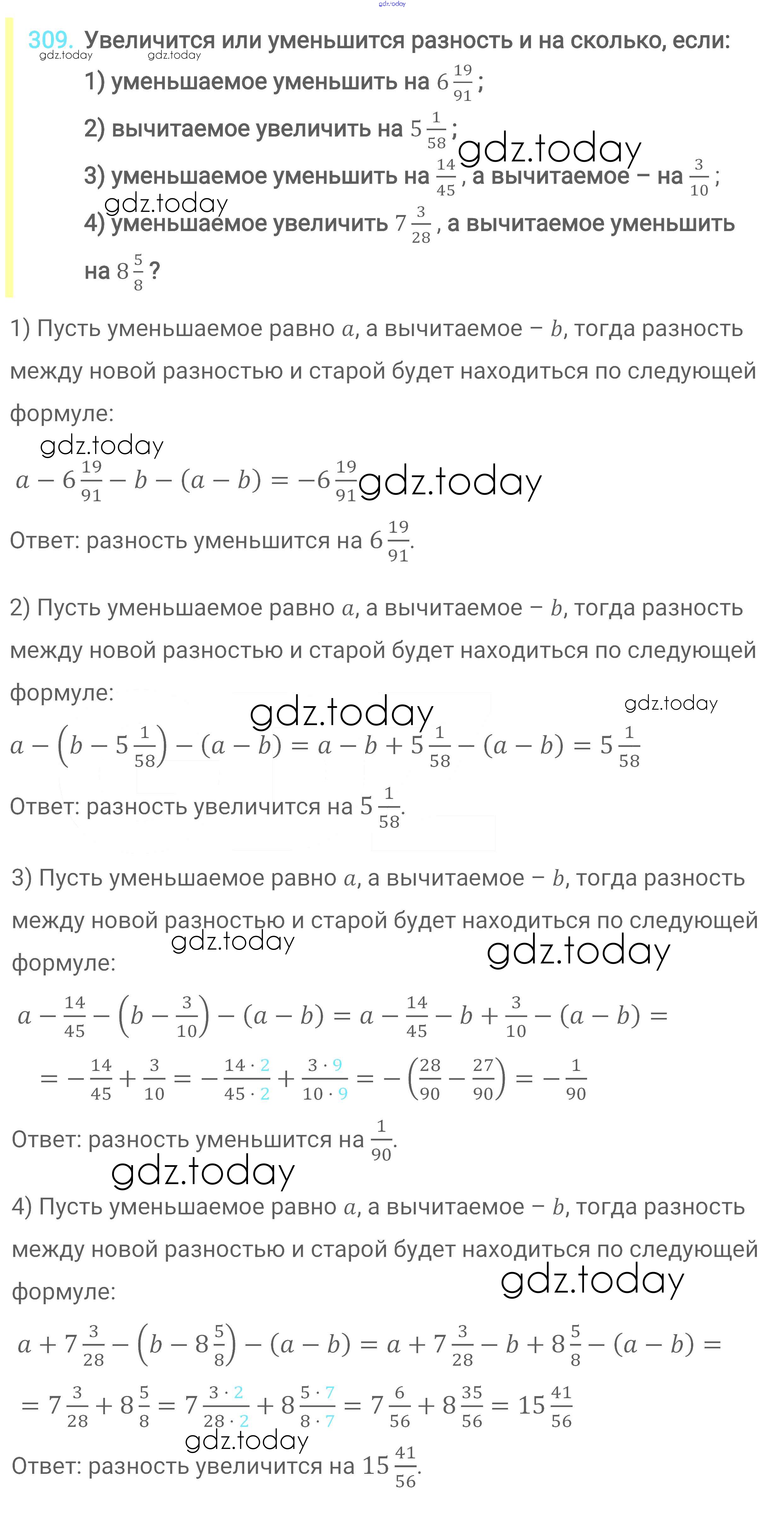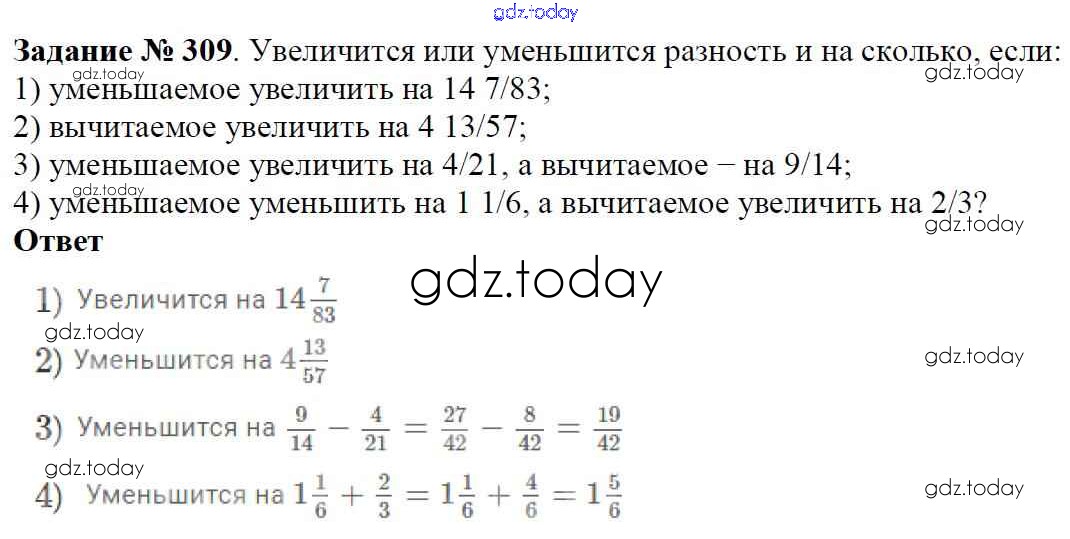 Ответы к Решение к главе 2. Обыкновенные дроби (упражнения) 309 Учебнику по Математике для 6 класса Мерзляк, Полонский Вентана-граф Алгоритм успеха 2016