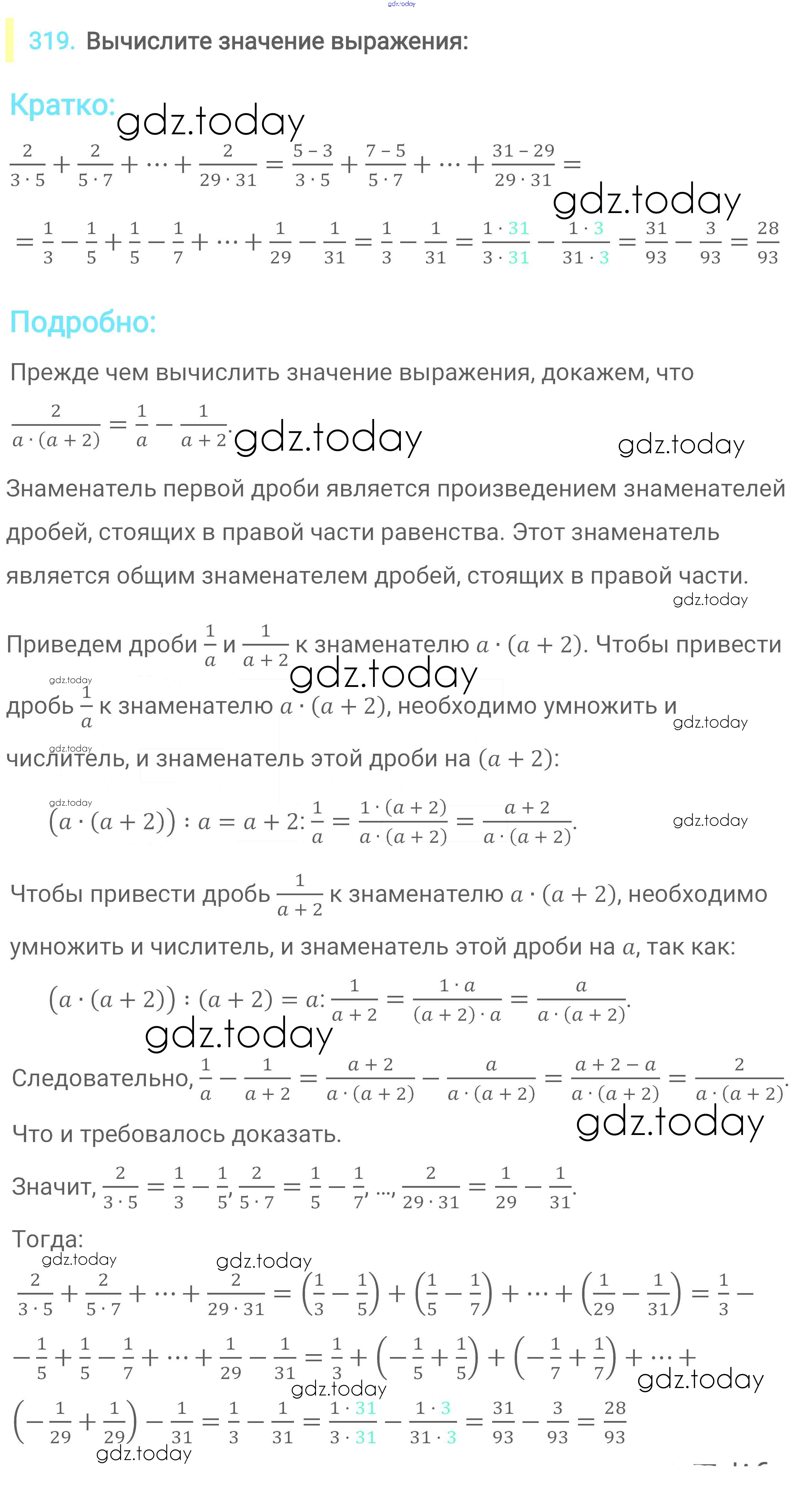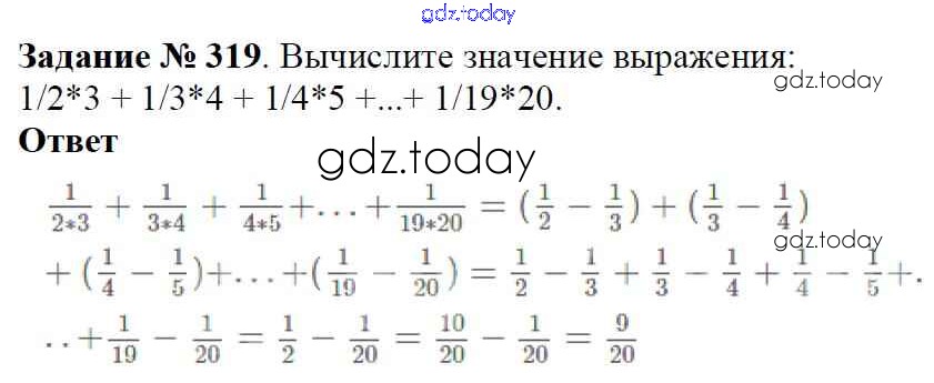 Ответы к Решение к главе 2. Обыкновенные дроби (упражнения) 319 Учебнику по Математике для 6 класса Мерзляк, Полонский Вентана-граф Алгоритм успеха 2016