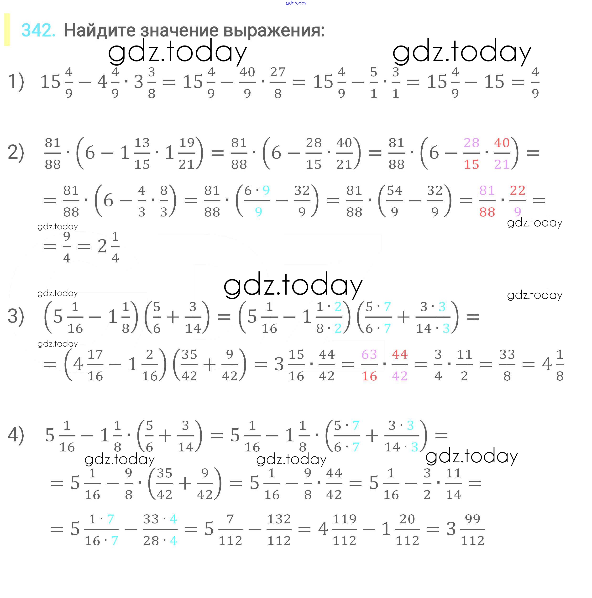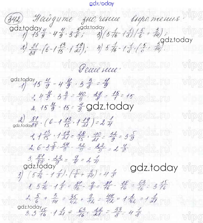 Ответы к Решение к главе 2. Обыкновенные дроби (упражнения) 342 Учебнику по Математике для 6 класса Мерзляк, Полонский Вентана-граф Алгоритм успеха 2016