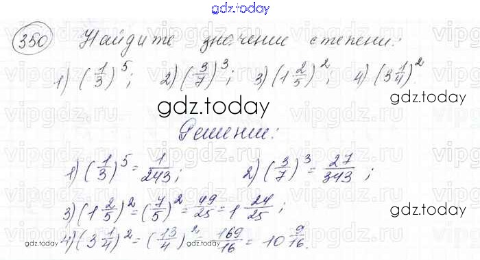 На страницах сайта gdz.today вы найдете учебный и вспомогательный материал, направленный на улучшения знаний школьной программы. ГДЗ - онлайн мир знаний Решение к главе 2. Обыкновенные дроби (упражнения) 350 Учебнику по Математике для 6 класса Мерзляк, Полонский Вентана-граф Алгоритм успеха 2016