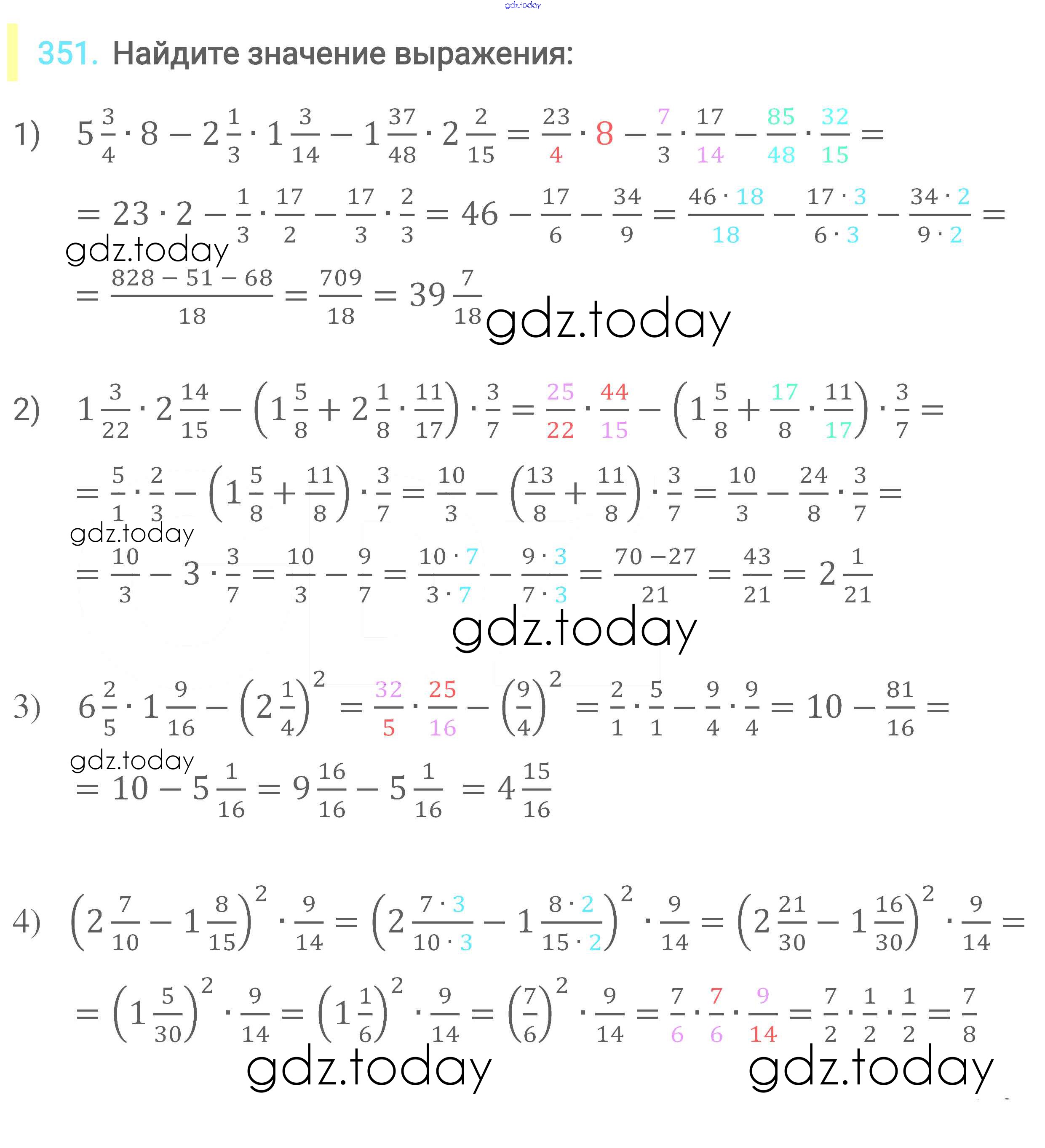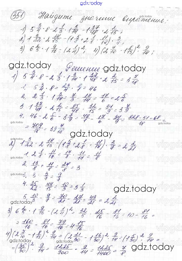 Ответы к Решение к главе 2. Обыкновенные дроби (упражнения) 351 Учебнику по Математике для 6 класса Мерзляк, Полонский Вентана-граф Алгоритм успеха 2016