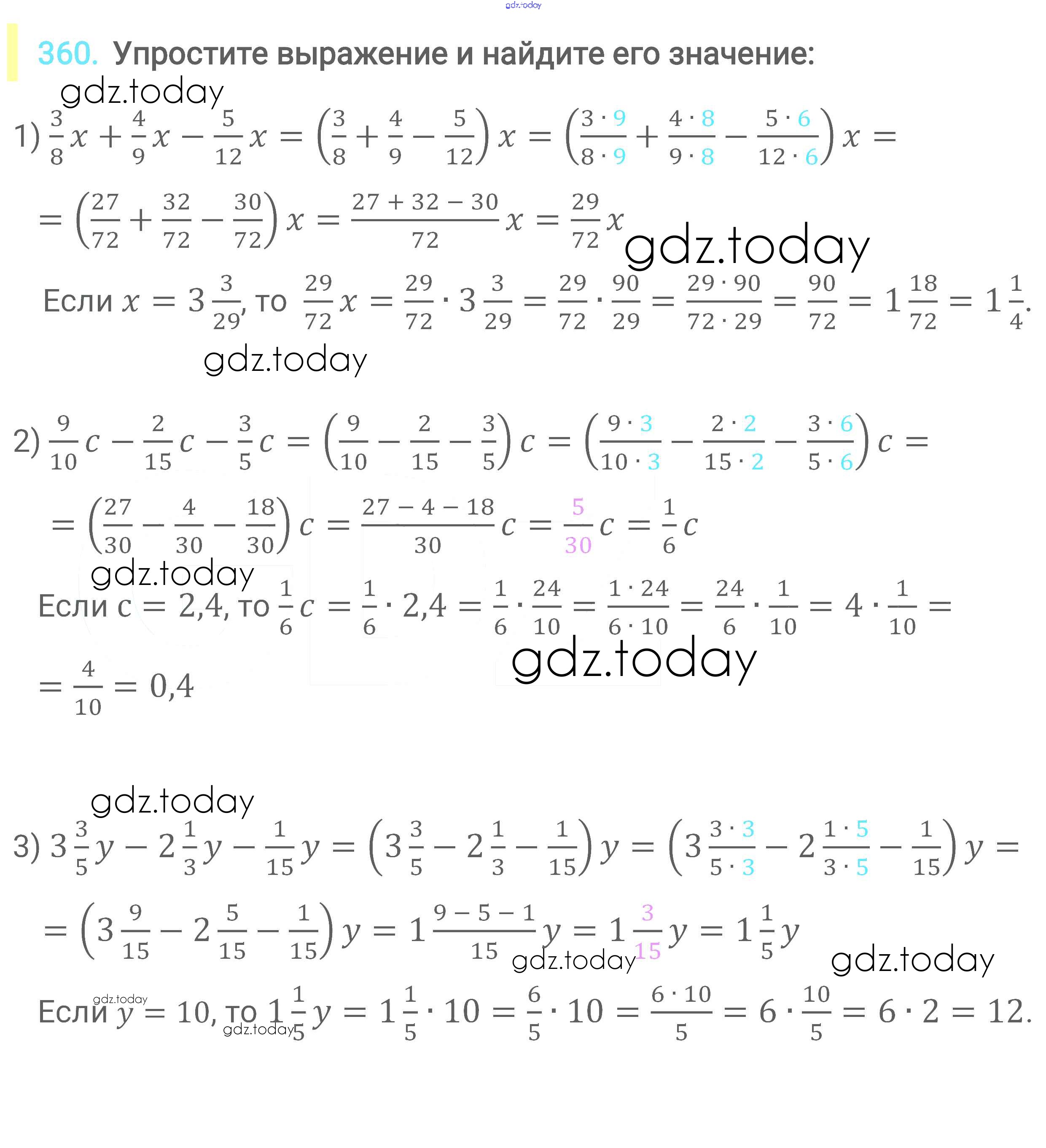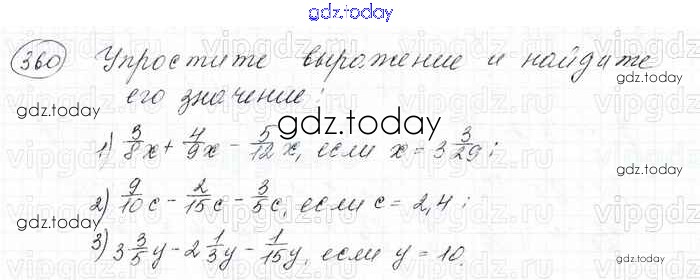 На страницах сайта gdz.today вы найдете учебный и вспомогательный материал, направленный на улучшения знаний школьной программы. ГДЗ - онлайн мир знаний Решение к главе 2. Обыкновенные дроби (упражнения) 360 Учебнику по Математике для 6 класса Мерзляк, Полонский Вентана-граф Алгоритм успеха 2016