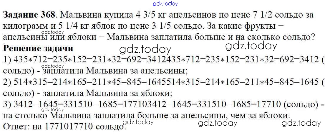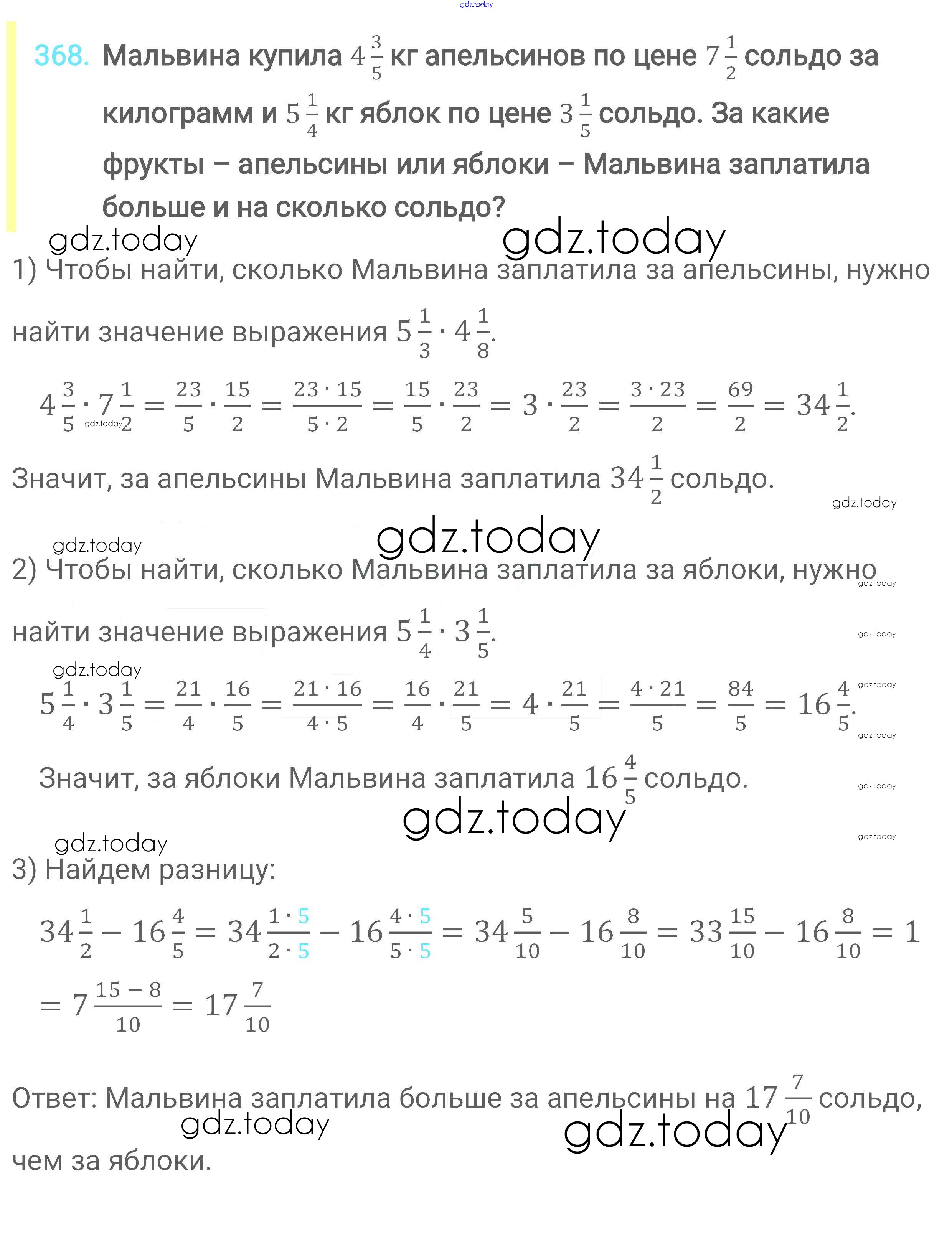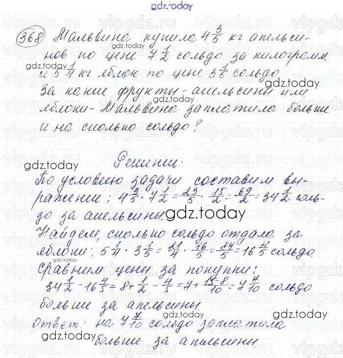 На страницах сайта gdz.today вы найдете учебный и вспомогательный материал, направленный на улучшения знаний школьной программы. ГДЗ - онлайн мир знаний Решение к главе 2. Обыкновенные дроби (упражнения) 368 Учебнику по Математике для 6 класса Мерзляк, Полонский Вентана-граф Алгоритм успеха 2016