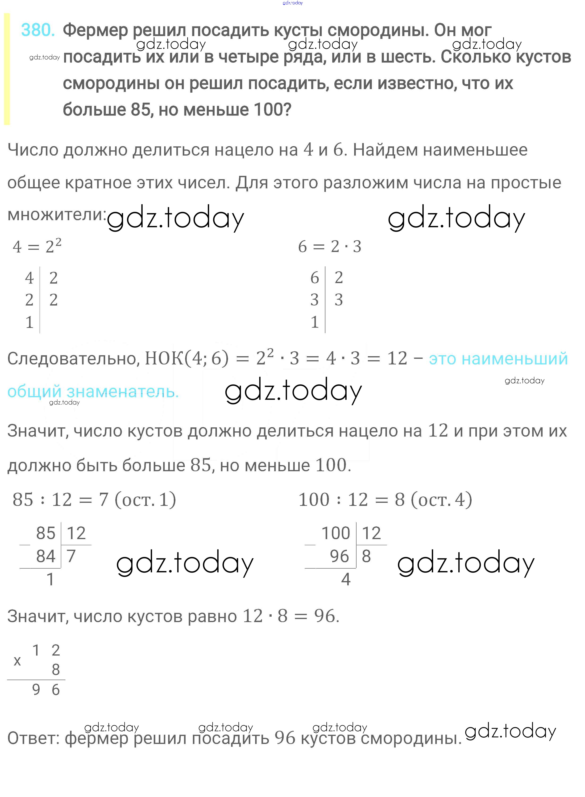 На страницах сайта gdz.today вы найдете учебный и вспомогательный материал, направленный на улучшения знаний школьной программы. ГДЗ - онлайн мир знаний Решение к главе 2. Обыкновенные дроби (упражнения) 380 Учебнику по Математике для 6 класса Мерзляк, Полонский Вентана-граф Алгоритм успеха 2016