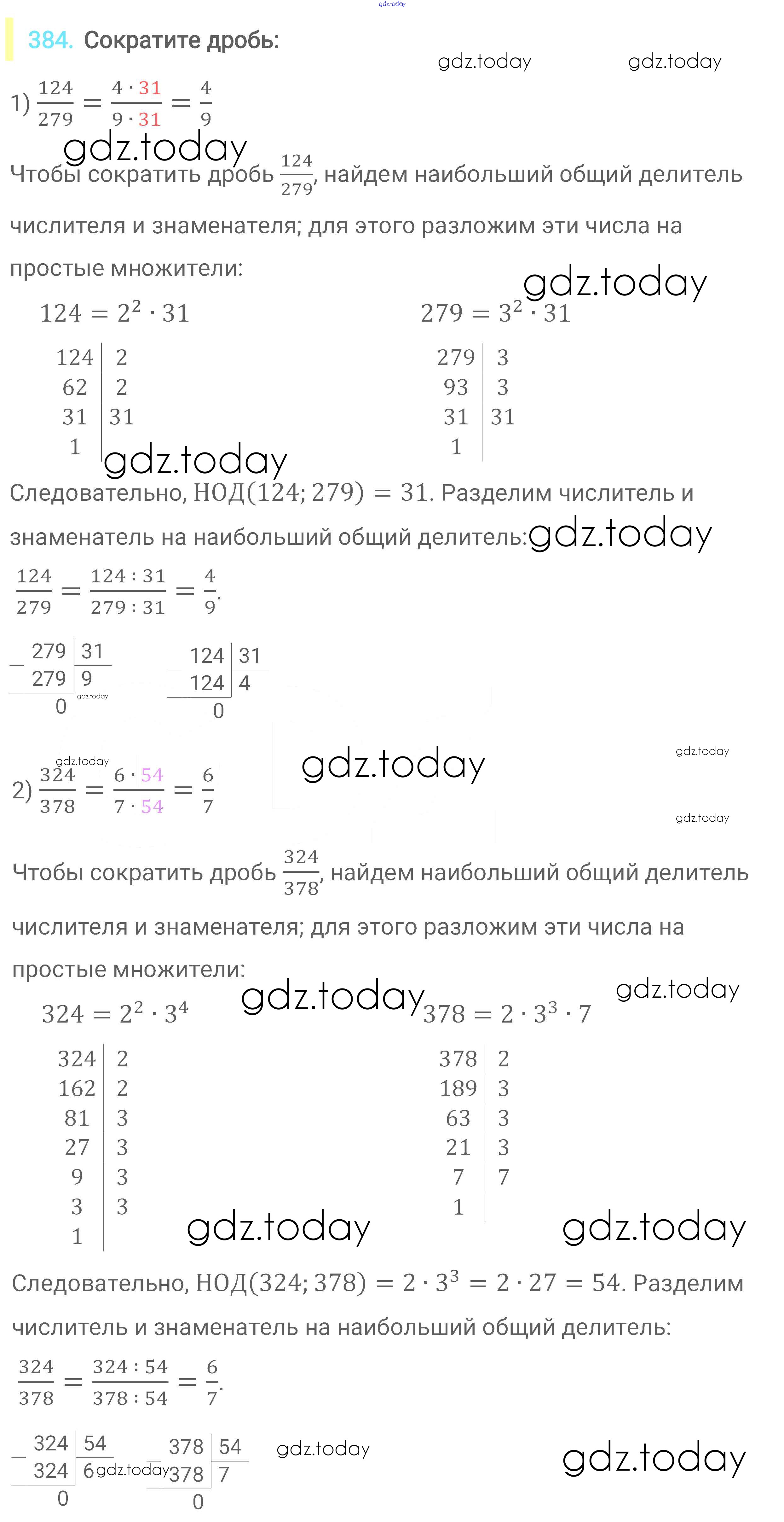 Ответы к Решение к главе 2. Обыкновенные дроби (упражнения) 384 Учебнику по Математике для 6 класса Мерзляк, Полонский Вентана-граф Алгоритм успеха 2016