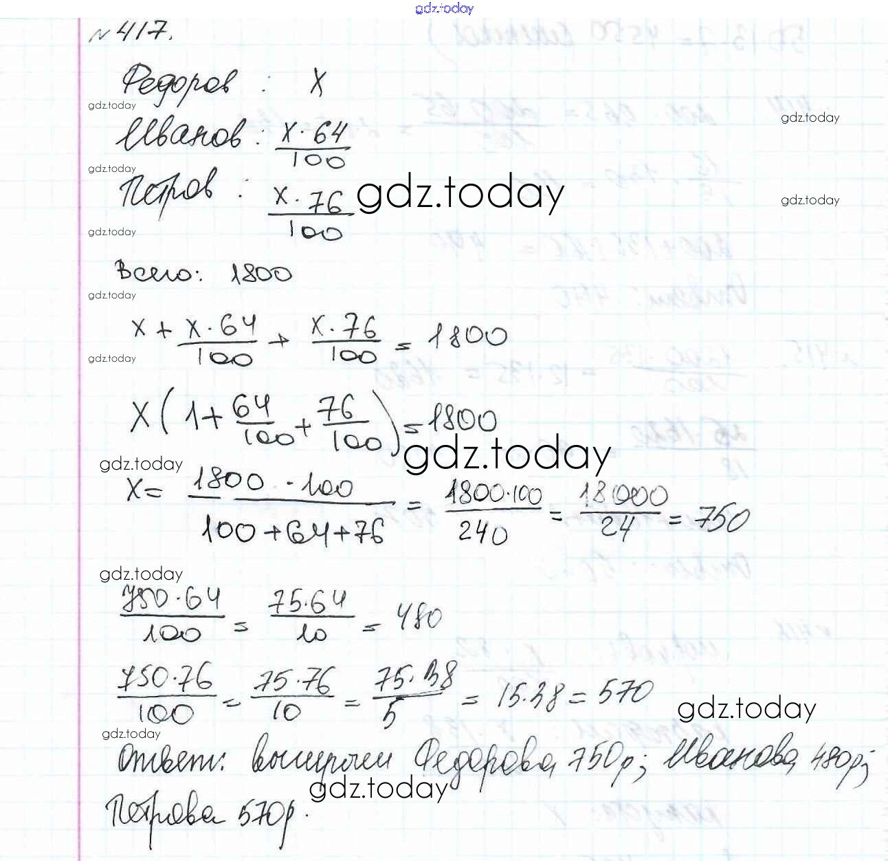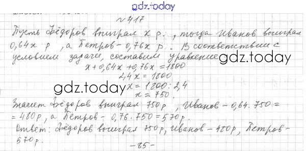 Ответы к Решение к главе 2. Обыкновенные дроби (упражнения) 417 Учебнику по Математике для 6 класса Мерзляк, Полонский Вентана-граф Алгоритм успеха 2016