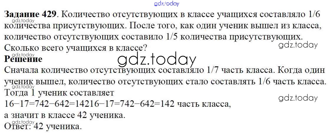На страницах сайта gdz.today вы найдете учебный и вспомогательный материал, направленный на улучшения знаний школьной программы. ГДЗ - онлайн мир знаний Решение к главе 2. Обыкновенные дроби (упражнения)  429 Учебнику по Математике для 6 класса Мерзляк, Полонский  Вентана-граф Алгоритм успеха 2016