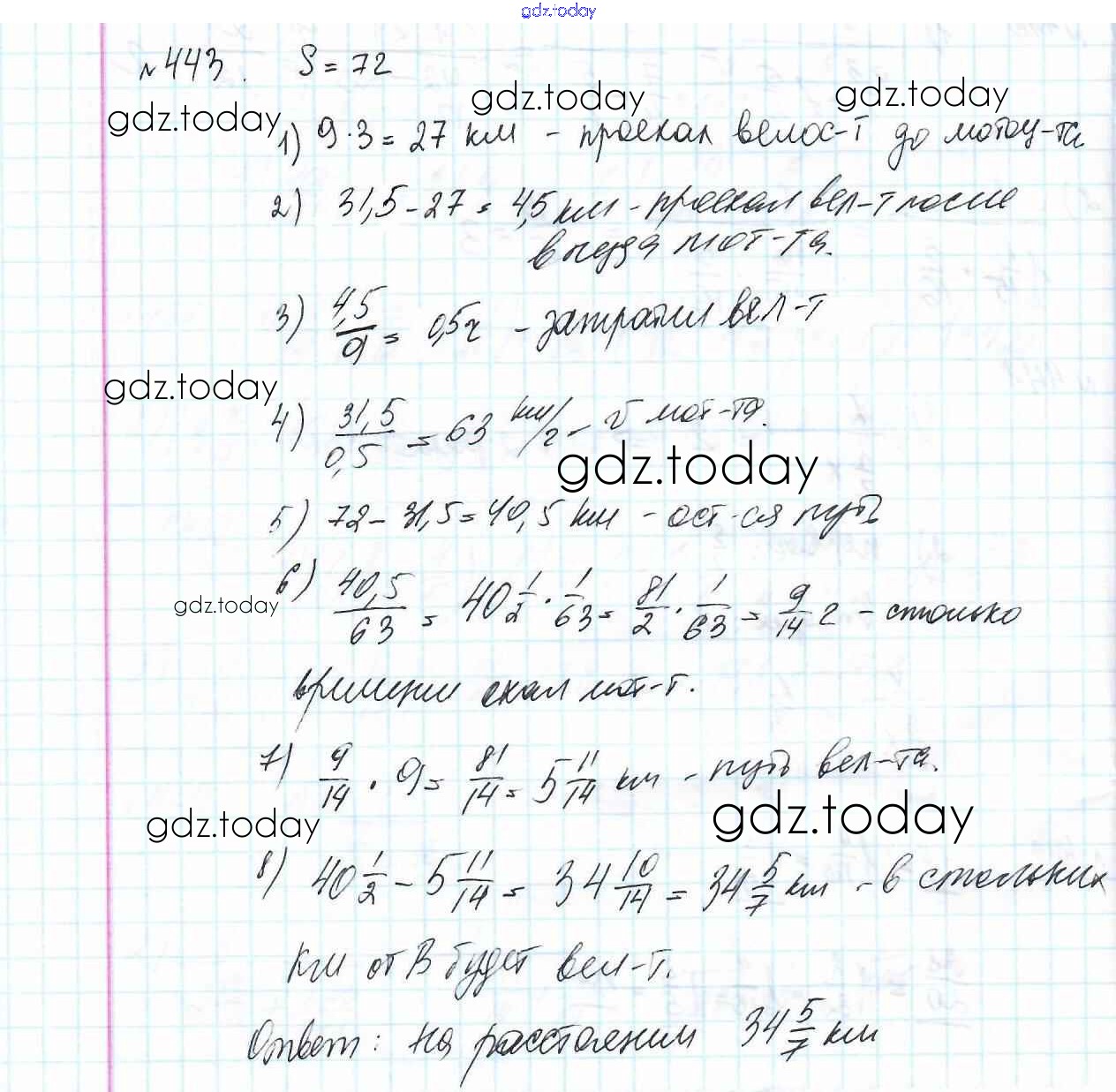Ответы к Решение к главе 2. Обыкновенные дроби (упражнения) 443 Учебнику по Математике для 6 класса Мерзляк, Полонский Вентана-граф Алгоритм успеха 2016