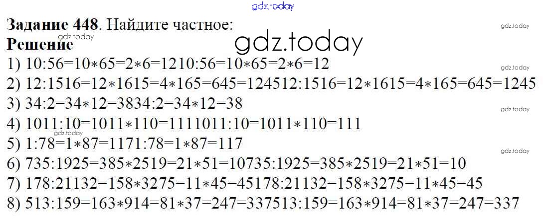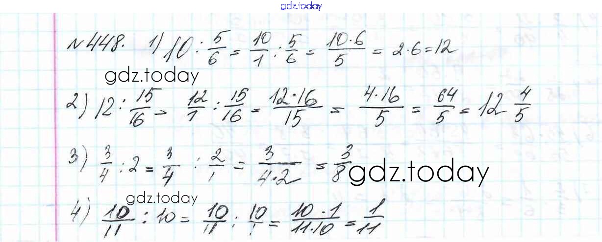 Ответы к Решение к главе 2. Обыкновенные дроби (упражнения) 448 Учебнику по Математике для 6 класса Мерзляк, Полонский Вентана-граф Алгоритм успеха 2016