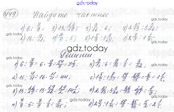 Ответы к Решение к главе 2. Обыкновенные дроби (упражнения) 449 Учебнику по Математике для 6 класса Мерзляк, Полонский Вентана-граф Алгоритм успеха 2016