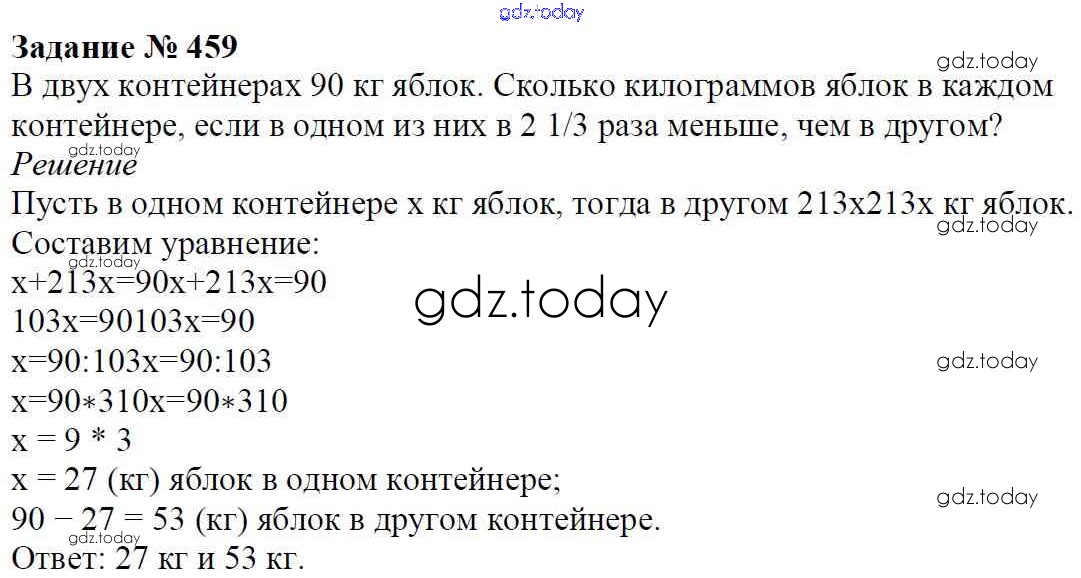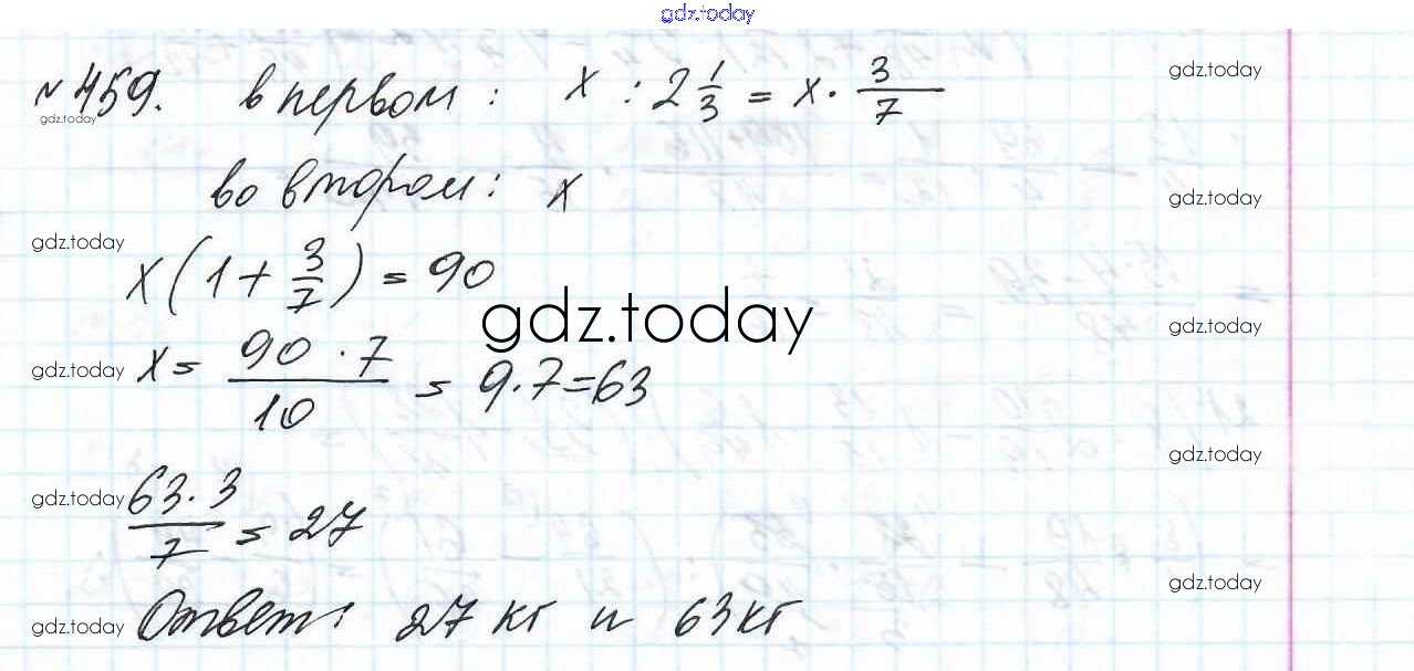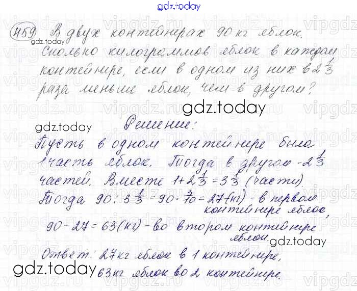 Ответы к Решение к главе 2. Обыкновенные дроби (упражнения) 459 Учебнику по Математике для 6 класса Мерзляк, Полонский Вентана-граф Алгоритм успеха 2016
