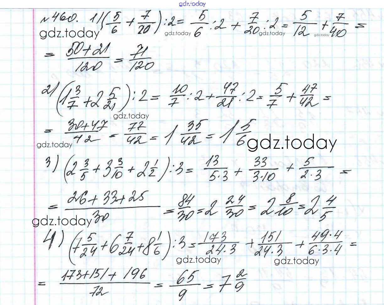 Ответы к Решение к главе 2. Обыкновенные дроби (упражнения) 460 Учебнику по Математике для 6 класса Мерзляк, Полонский Вентана-граф Алгоритм успеха 2016