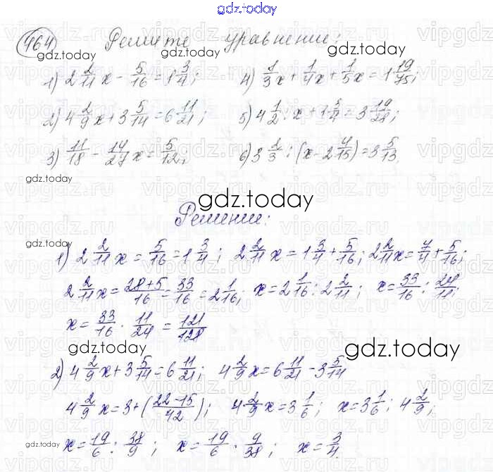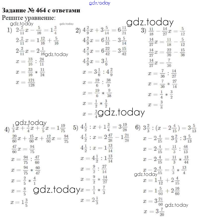 Ответы к Решение к главе 2. Обыкновенные дроби (упражнения) 464 Учебнику по Математике для 6 класса Мерзляк, Полонский Вентана-граф Алгоритм успеха 2016