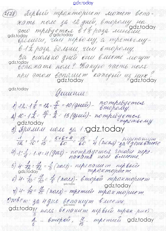 На страницах сайта gdz.today вы найдете учебный и вспомогательный материал, направленный на улучшения знаний школьной программы. ГДЗ - онлайн мир знаний Решение к главе 2. Обыкновенные дроби (упражнения) 478 Учебнику по Математике для 6 класса Мерзляк, Полонский Вентана-граф Алгоритм успеха 2016
