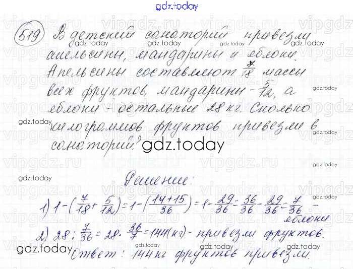 На страницах сайта gdz.today вы найдете учебный и вспомогательный материал, направленный на улучшения знаний школьной программы. ГДЗ - онлайн мир знаний Решение к главе 2. Обыкновенные дроби (упражнения) 519 Учебнику по Математике для 6 класса Мерзляк, Полонский Вентана-граф Алгоритм успеха 2016